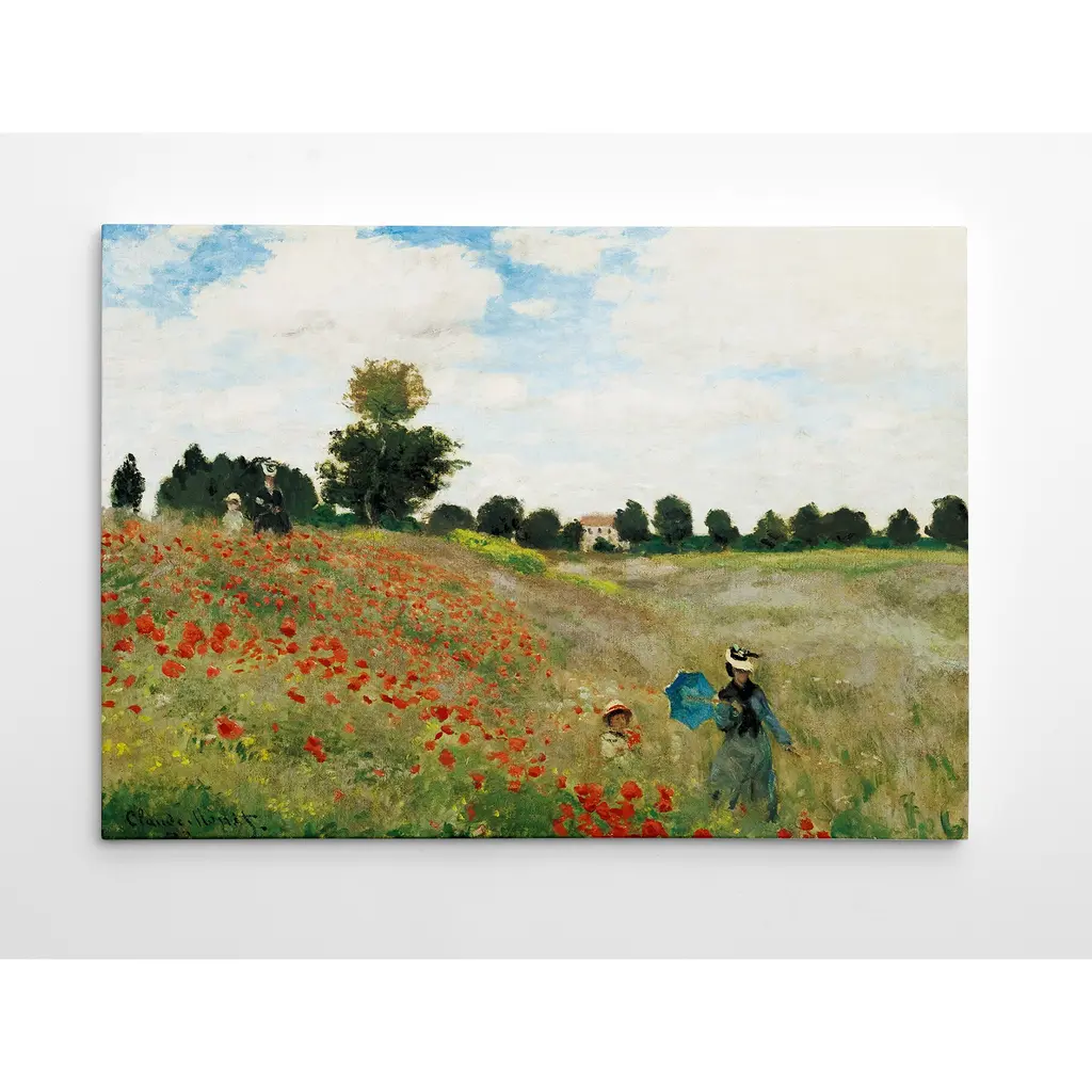 Impress your guests with this Impressionist 'Poppy Field' painting by Claude Monet. The print is wrapped canvas, so it does not need to be framed, which saves you money.Period: ContemporaryOrientation: Landscape, Rectangle, HorizontalSubject: ImpressionismType: Canvas Art, Wrapped, Fine Art GicleeStyle: Museum Masters, Claude MonetNumber of Pieces: 1Framed: UnframedArtist: Claude MonetExact Color: BlueSize: LargeColor: White, Black, Beige
