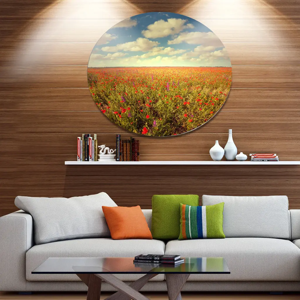 Poppy Filed Under Bright Sky, Floral Disc Metal Artwork, 23"
