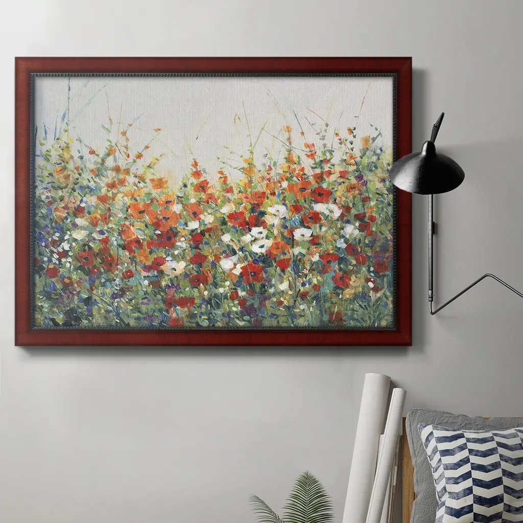 Poppy Flower Mosaic Fieldscape | Luxury Handcrafted Natural Stone Art - 130cm X 104cm (51" X 41") / With Frame