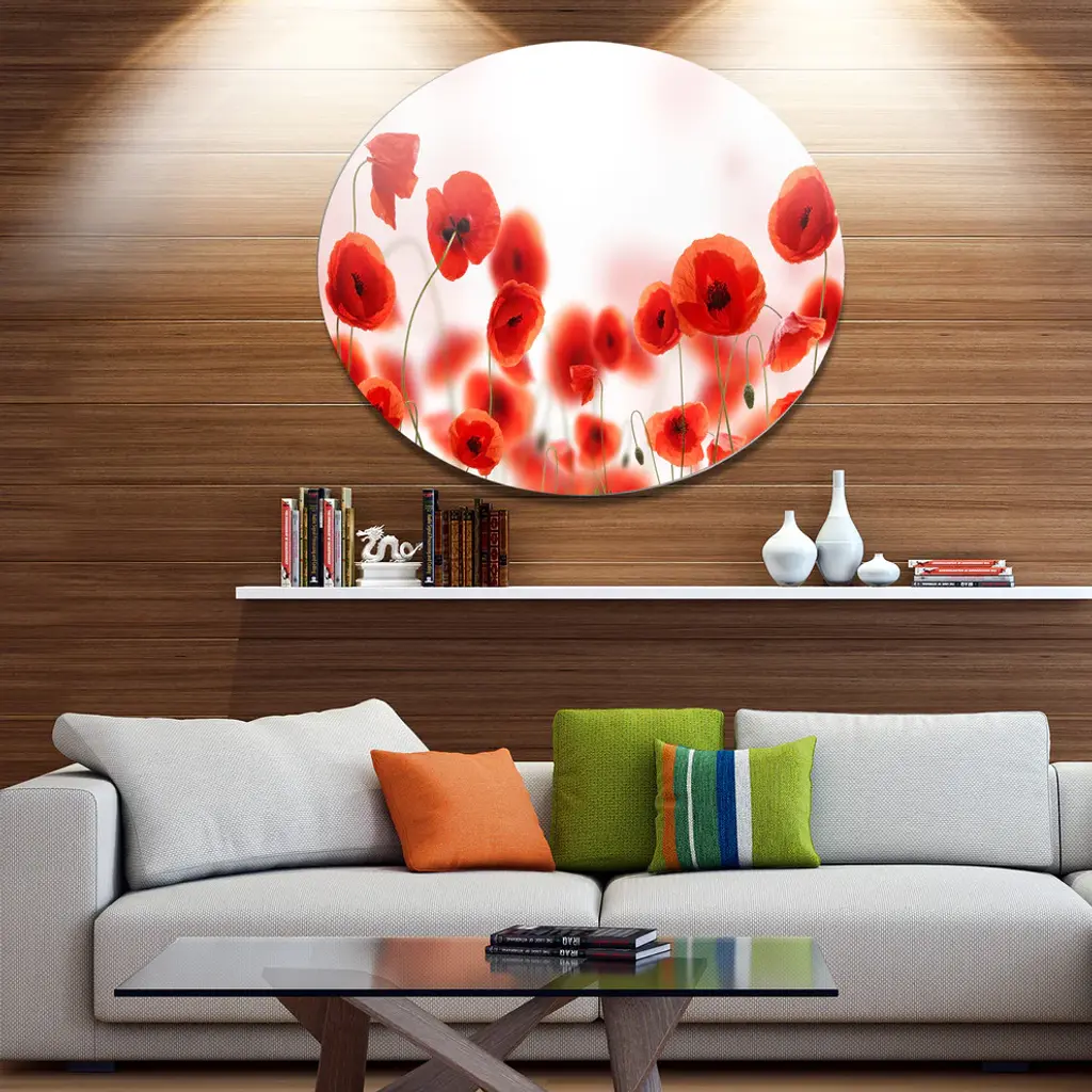 Bring Contemporary Abstraction to your home with this large Circle Metal wall art. This Poppy Flowers on Pink Background Metal Artwork makes it the focal point of any room or office. - White Gloss Coating ensures colors are extra vibrant with light reflection.- Aluminum grade Sheet Metal with 1 inch mounting frame on the back giving the illusion that the artwork is floating on the wall..- Mounting Brackets are included along with instructions.- High Quality Digital images are created directly into a glossy aluminum panel producing a stunning and captivating print into the glossy finish of the metal.- Water, Fire and Scratch resistant HD Aluminum panels.- Looks better than any photo paper and guaranteed to last at least 20 years- Easy to clean with a microfiber cloth. Colors are far superior to regular Canvas Art. - Easy to Hang