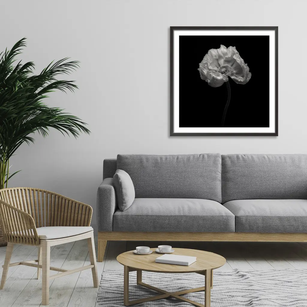 Infuse any space with the essence of this beautifully captured framed print photograph titled "Poppy" by Lotte Gronkjar. This piece features a monochromatic up-close view of a poppy flower to complete any modern space. Handcrafted in Chattanooga, Tennessee, by Ready2HangArt using a locally sourced artist print, finished with a rear hanger for simple installation.