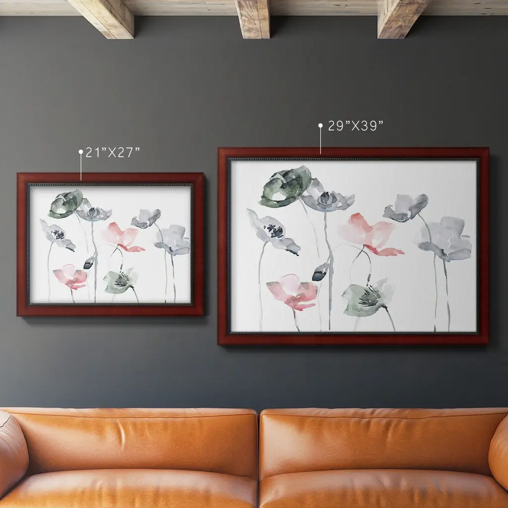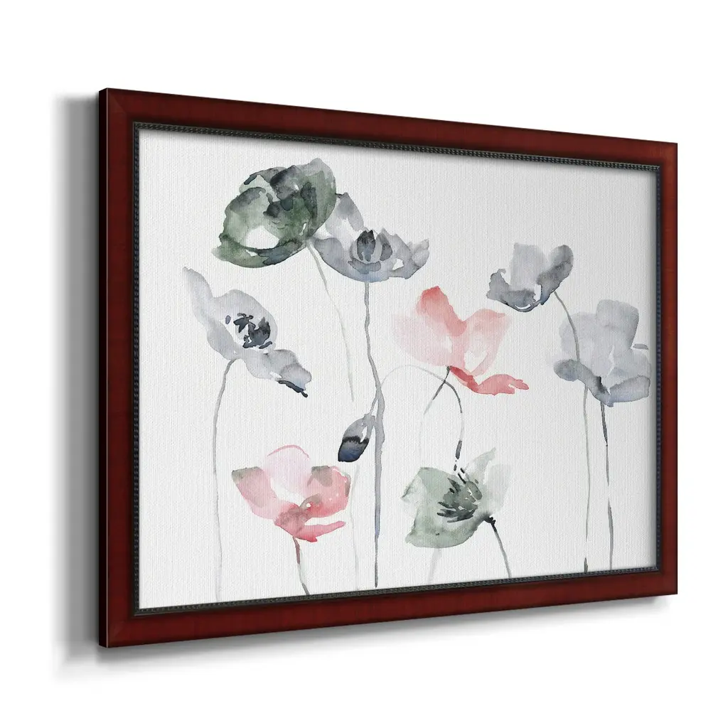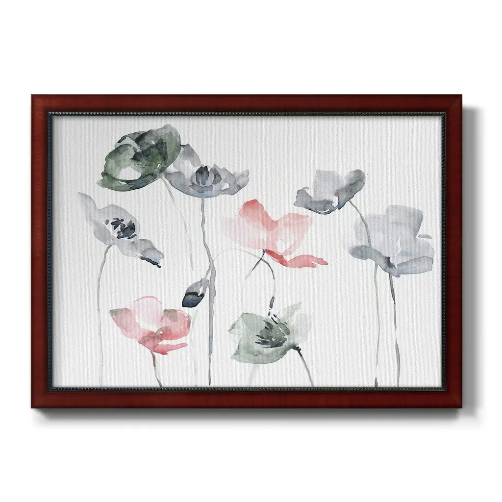 Poppy Haze II Premium Framed Canvas- Ready to Hang A Premium Framed Canvas created to last. Framed in distressed wood and available in an array of sizes and colors Featuring a beveled a solid wood stretcher bar, each piece comes ready to hand 3 SIZES AVAILABLE 16''X20'' - Overall Size 18'X27'' - Overall Size 24''x36'' - Overall Size Each piece is made to order. Each piece comes with hanging hardware. Made in the USA Ready to Hang Giclee Paper Print Acrylic Glass Beveled Matt Board