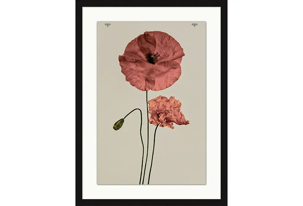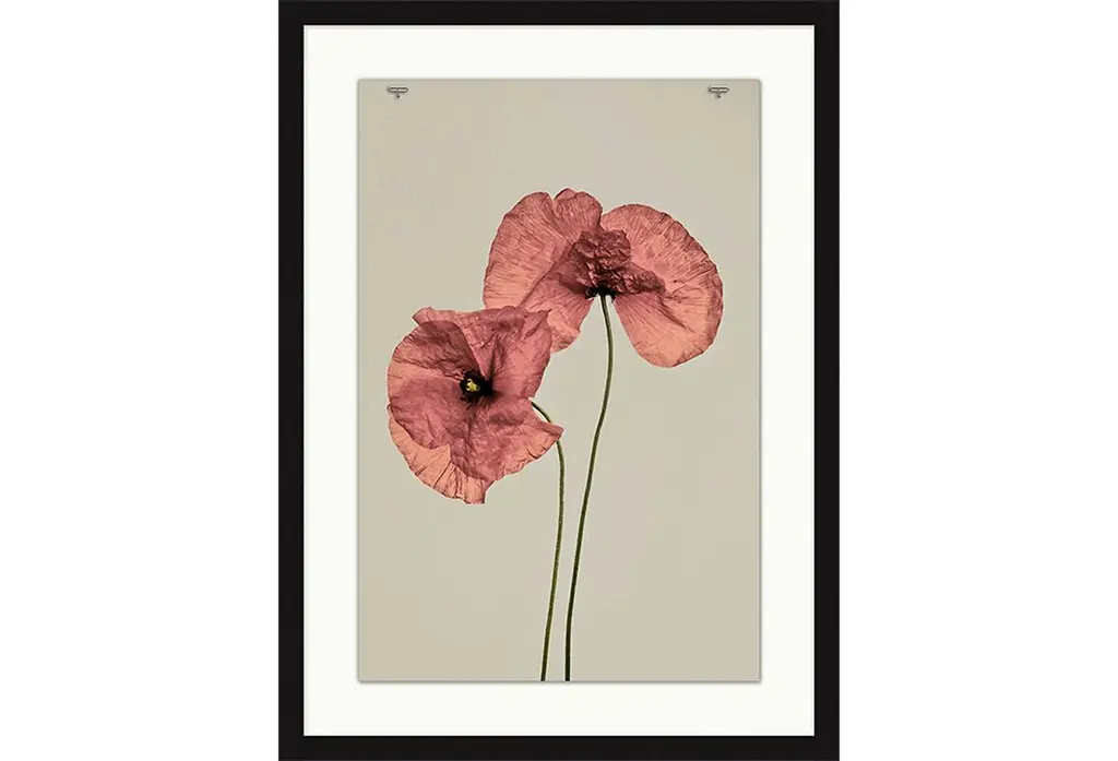 Designed by us and available only at One Kings Lane: Depicting translucent red poppies, this soft photograph is reproduced here on vellum, pinned to an off-white mat, and displayed under glass in a ready-to-hang frame.