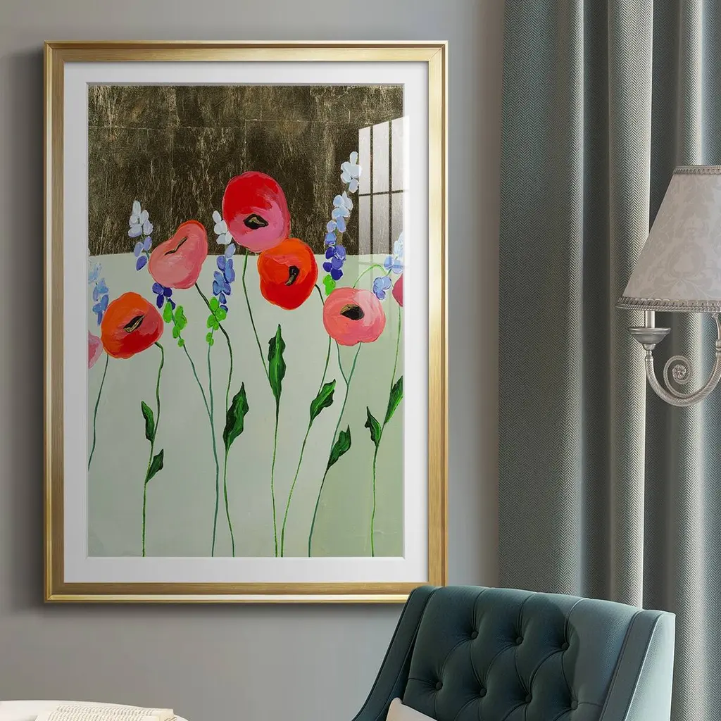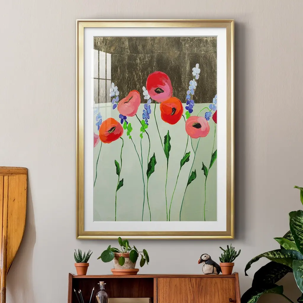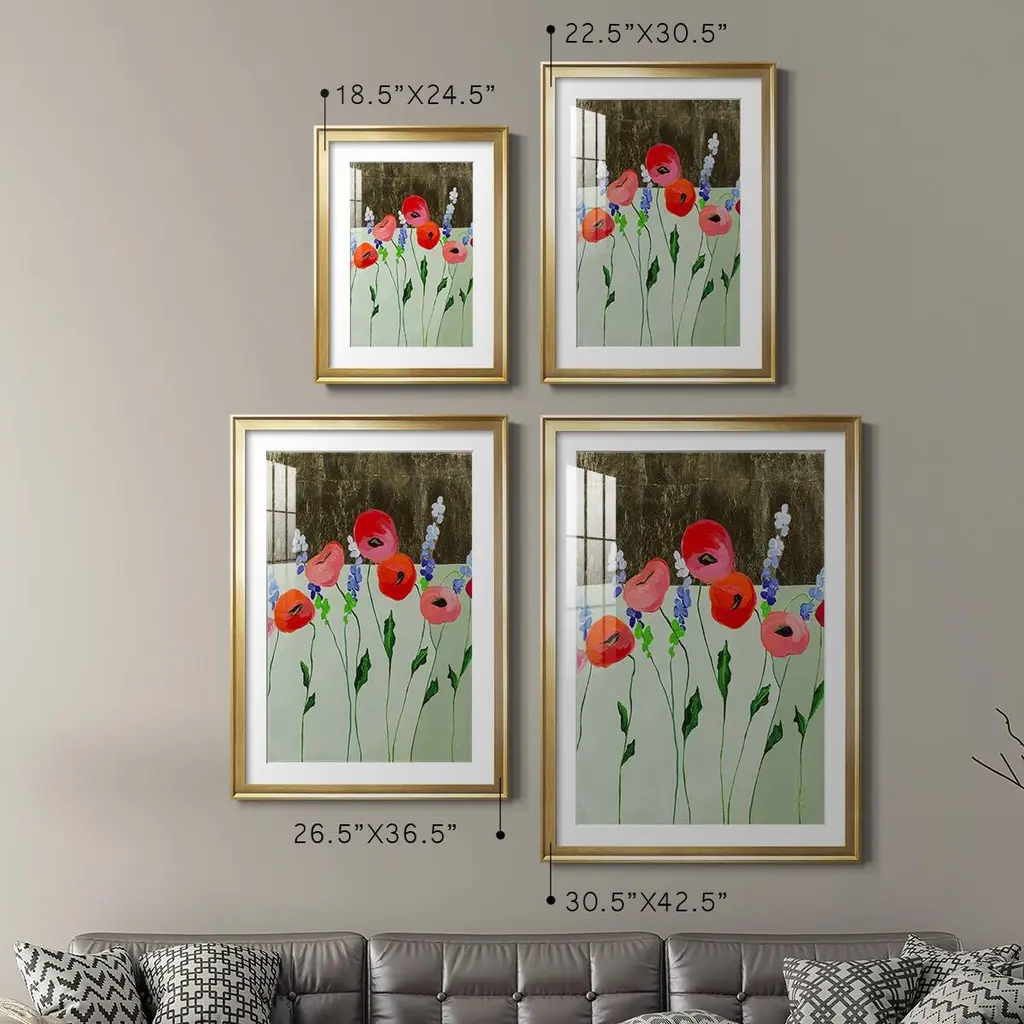 Poppy Party Premium Framed Print - Ready to Hang A Premium Framed Print created to last. Framed in distressed wood and available in an array of sizes and colors Featuring a beveled a solid wood stretcher bar, each piece comes ready to hand 4 SIZES AVAILABLE 30.5''X42.5'' - Overall Size 26.5'X36.5'' - Overall Size 22.5''x30.5'' - Overall Size 18.5''x24.5'' - Overall Size Each piece is made to order. Each piece comes with hanging hardware. Made in the USA Ready to Hang Giclee Paper Print Acrylic Glass Beveled Matt Board