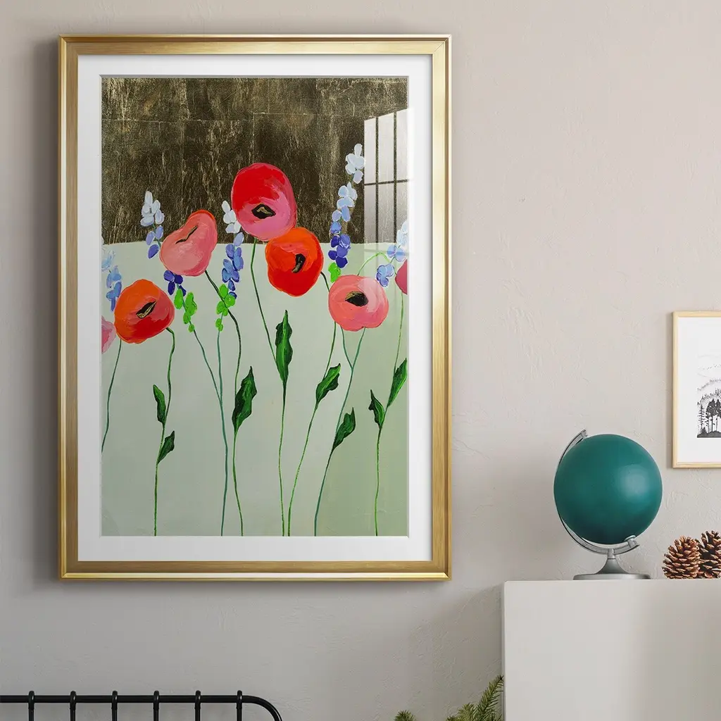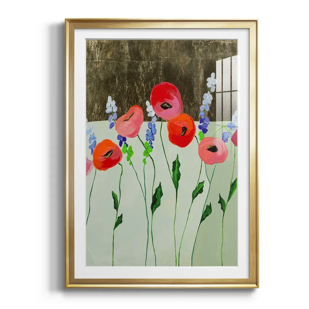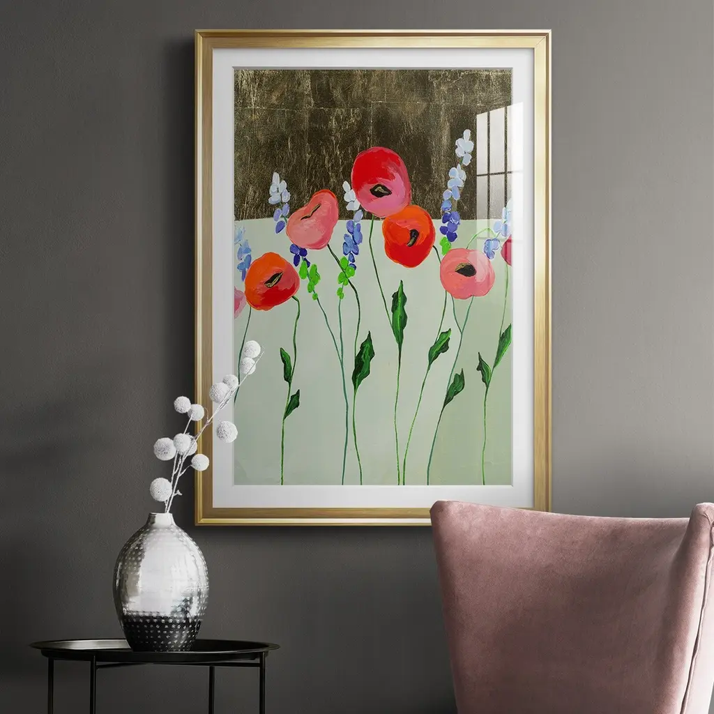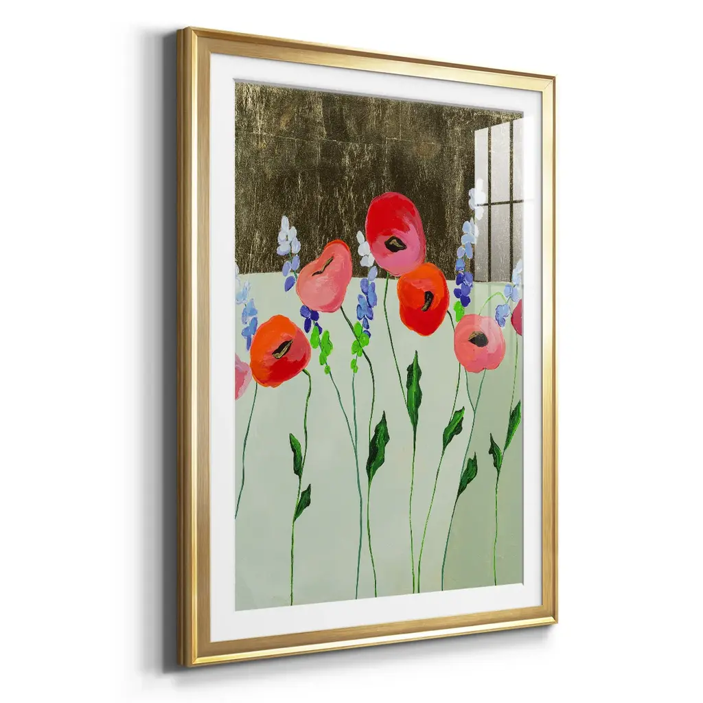 Poppy Party Premium Framed Print - Ready to Hang A Premium Framed Print created to last. Framed in distressed wood and available in an array of sizes and colors Featuring a beveled a solid wood stretcher bar, each piece comes ready to hand 4 SIZES AVAILABLE 30.5''X42.5'' - Overall Size 26.5'X36.5'' - Overall Size 22.5''x30.5'' - Overall Size 18.5''x24.5'' - Overall Size Each piece is made to order. Each piece comes with hanging hardware. Made in the USA Ready to Hang Giclee Paper Print Acrylic Glass Beveled Matt Board