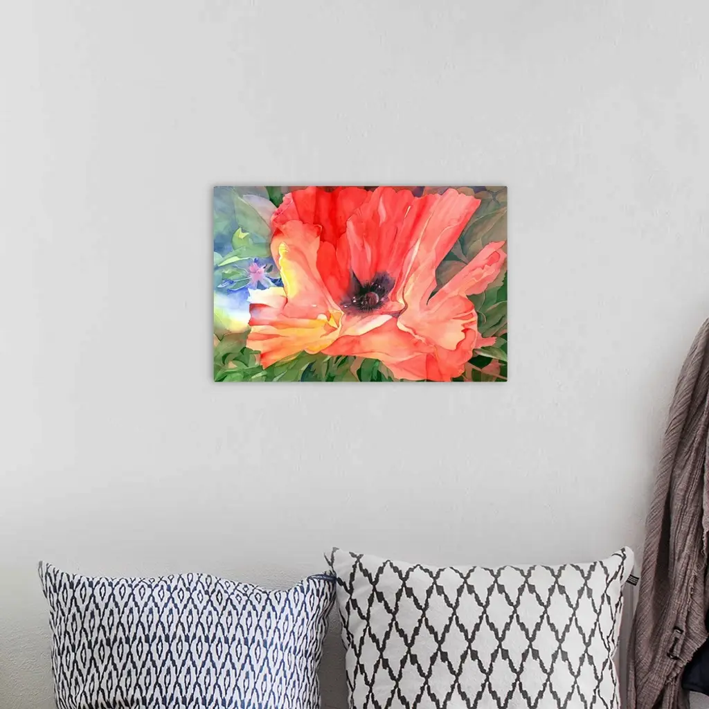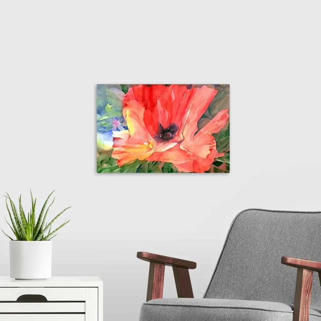 Contemporary watercolor painting of brightly colored flowers.