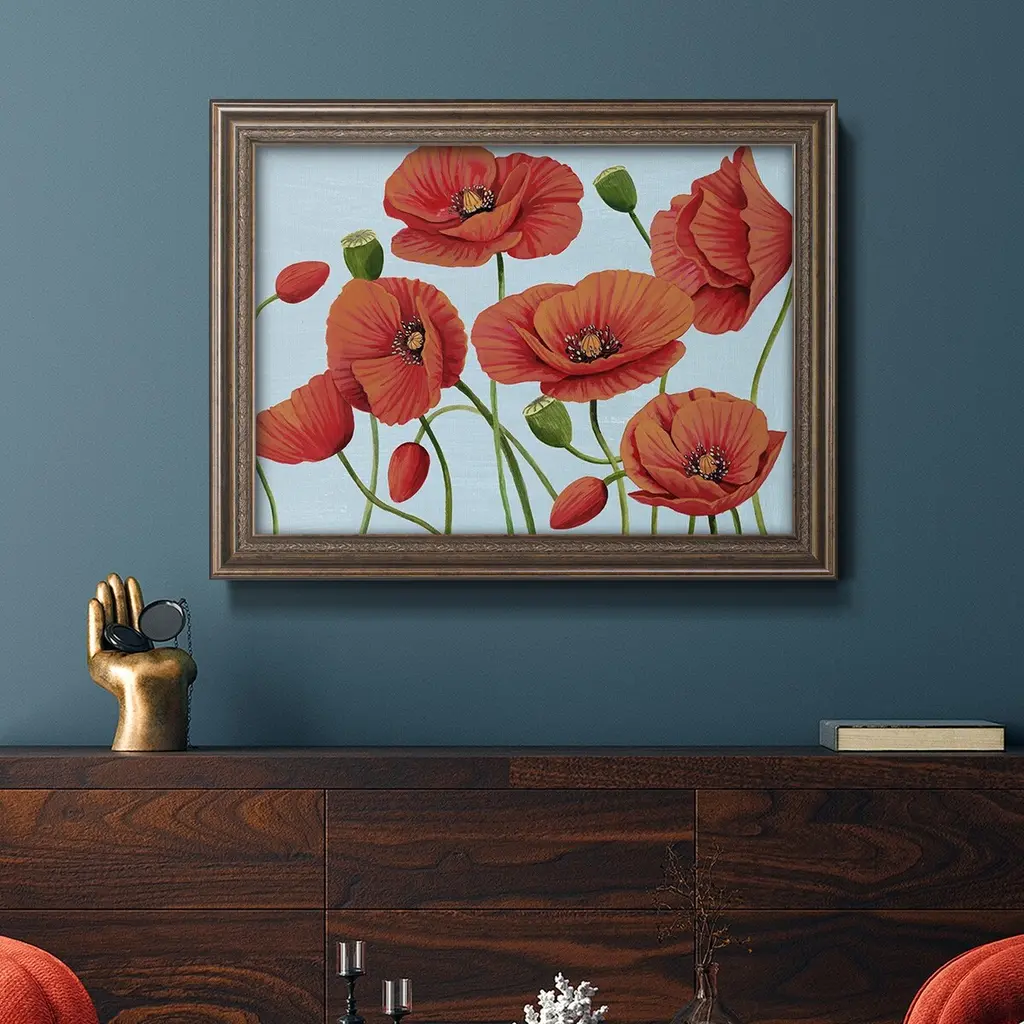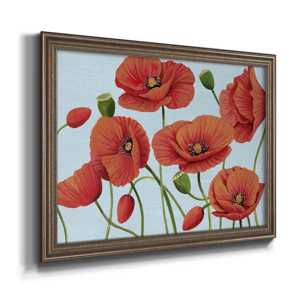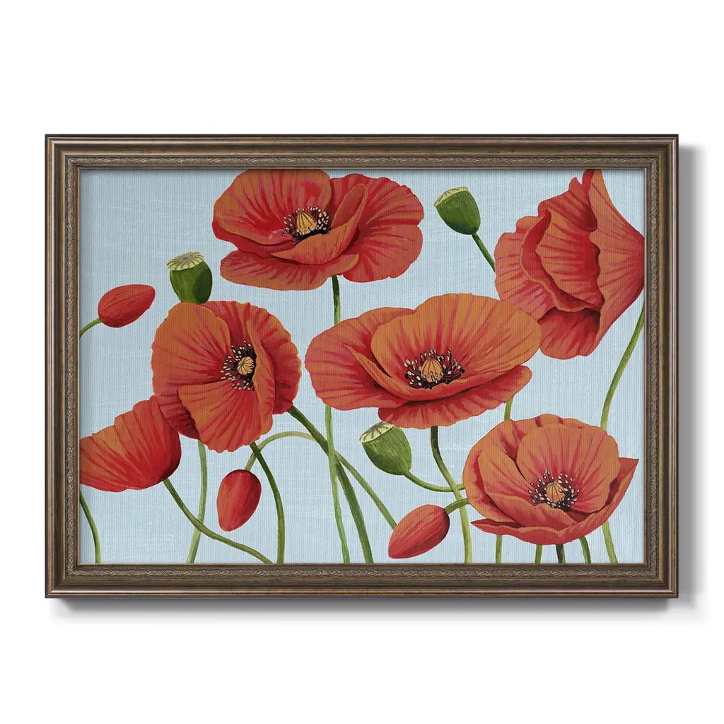 Poppy Topple III Premium Framed Canvas- Ready to Hang A Premium Framed Canvas created to last. Framed in distressed wood and available in an array of sizes and colors Featuring a beveled a solid wood stretcher bar, each piece comes ready to hand 3 SIZES AVAILABLE 16''X20'' - Overall Size 18'X27'' - Overall Size 24''x36'' - Overall Size Each piece is made to order. Each piece comes with hanging hardware. Made in the USA Ready to Hang Giclee Paper Print Acrylic Glass Beveled Matt Board