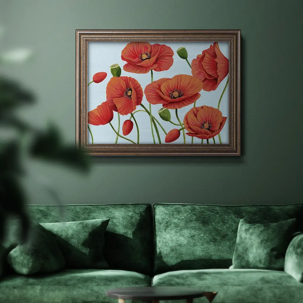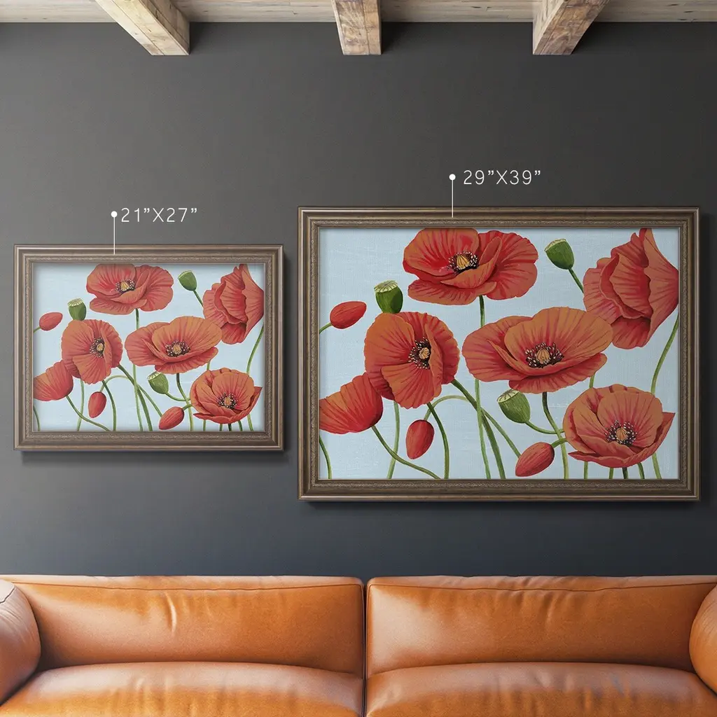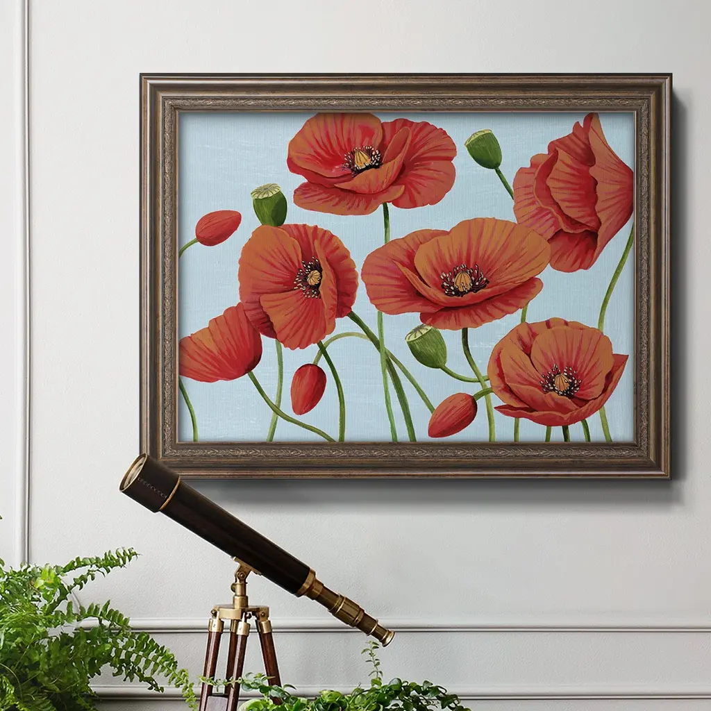 Poppy Topple III Premium Framed Canvas- Ready to Hang A Premium Framed Canvas created to last. Framed in distressed wood and available in an array of sizes and colors Featuring a beveled a solid wood stretcher bar, each piece comes ready to hand 3 SIZES AVAILABLE 16''X20'' - Overall Size 18'X27'' - Overall Size 24''x36'' - Overall Size Each piece is made to order. Each piece comes with hanging hardware. Made in the USA Ready to Hang Giclee Paper Print Acrylic Glass Beveled Matt Board