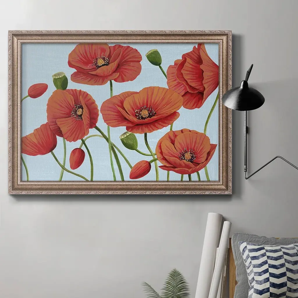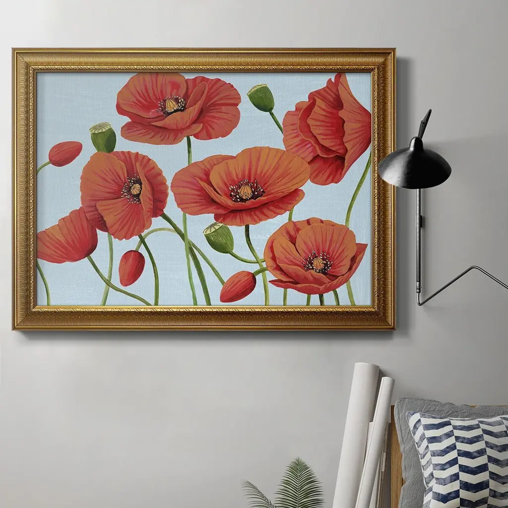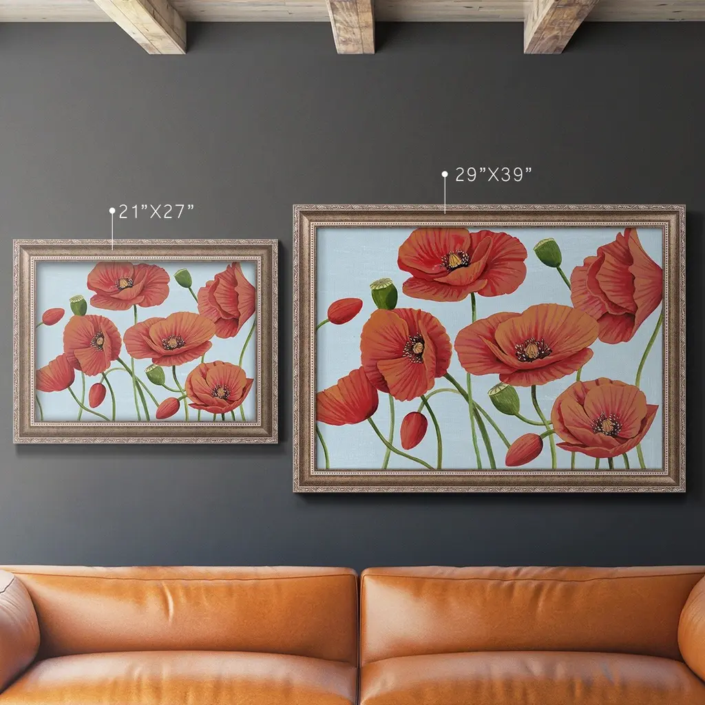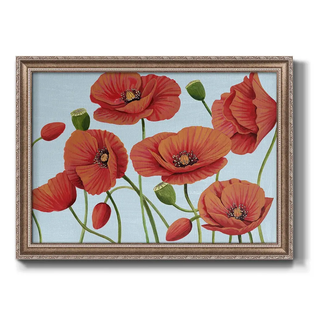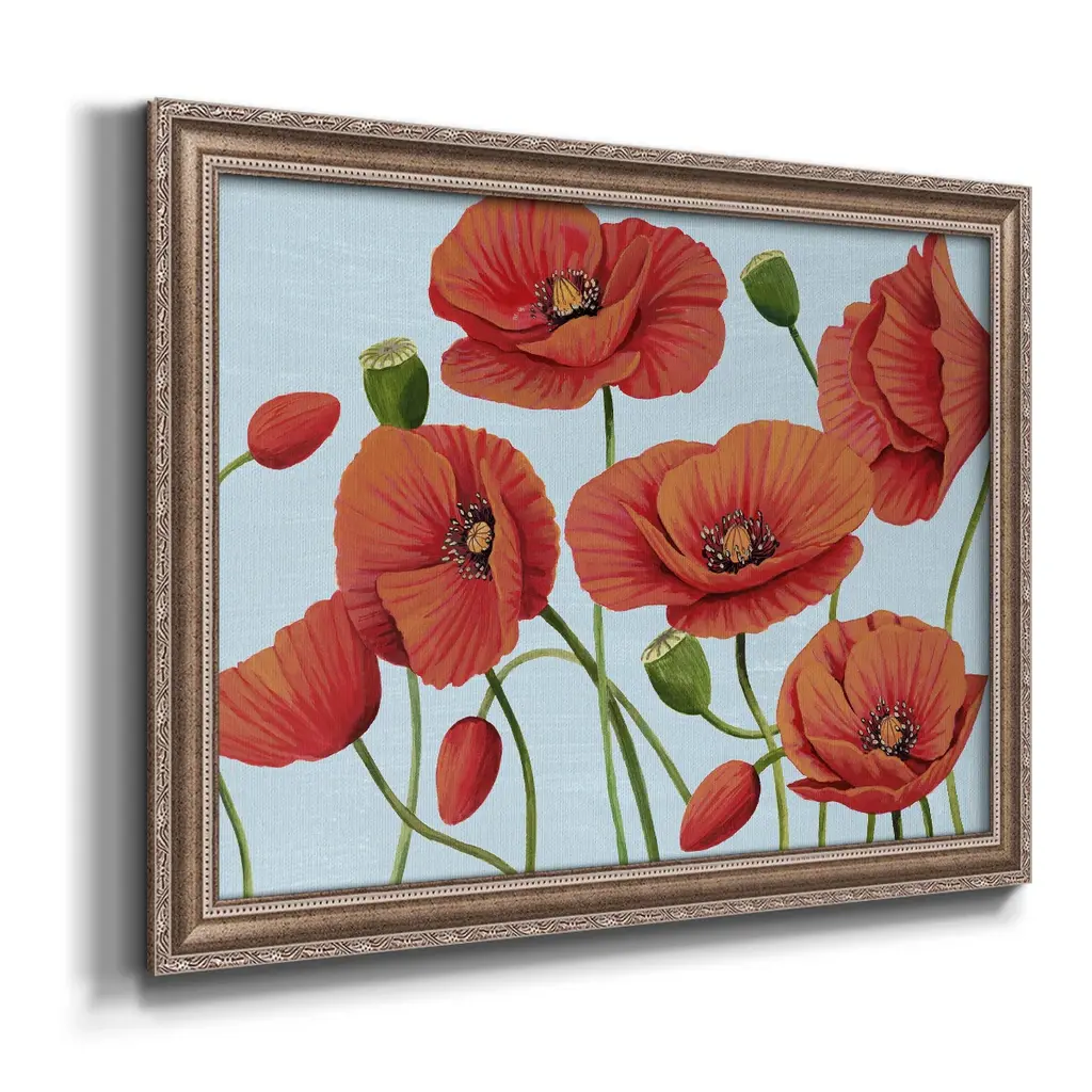 Poppy Topple III Premium Framed Canvas- Ready to Hang A Premium Framed Canvas created to last. Framed in distressed wood and available in an array of sizes and colors Featuring a beveled a solid wood stretcher bar, each piece comes ready to hand 3 SIZES AVAILABLE 16''X20'' - Overall Size 18'X27'' - Overall Size 24''x36'' - Overall Size Each piece is made to order. Each piece comes with hanging hardware. Made in the USA Ready to Hang Giclee Paper Print Acrylic Glass Beveled Matt Board
