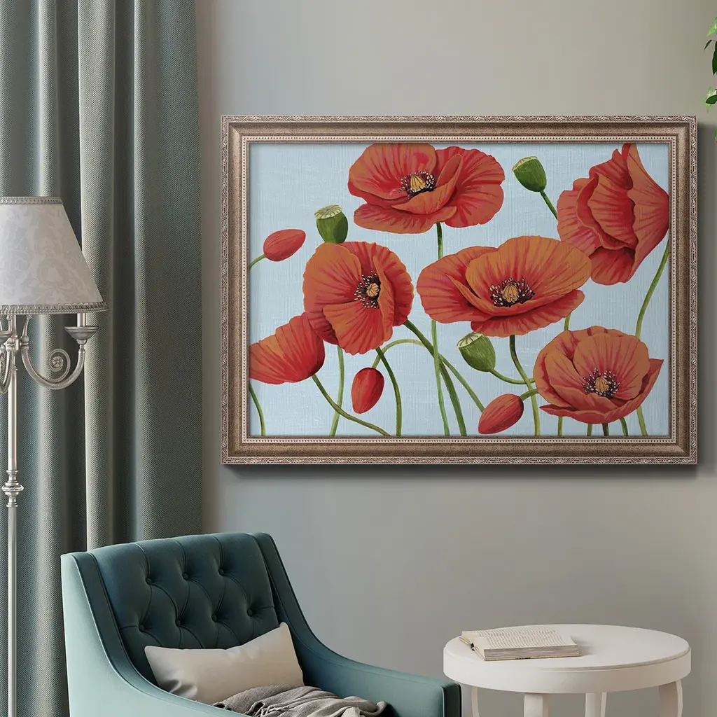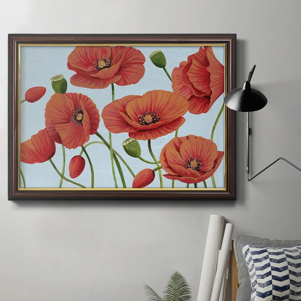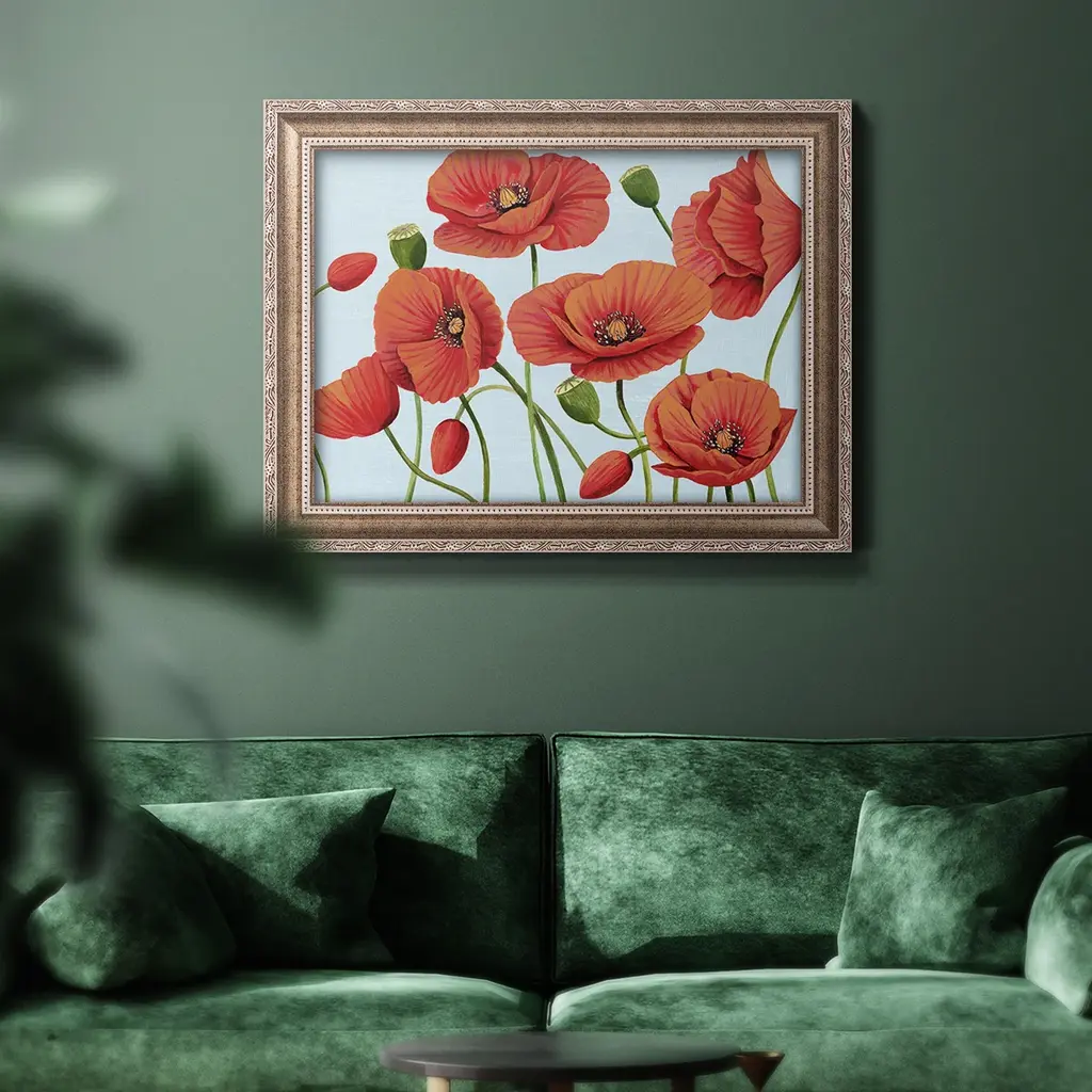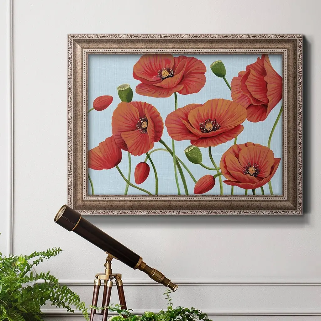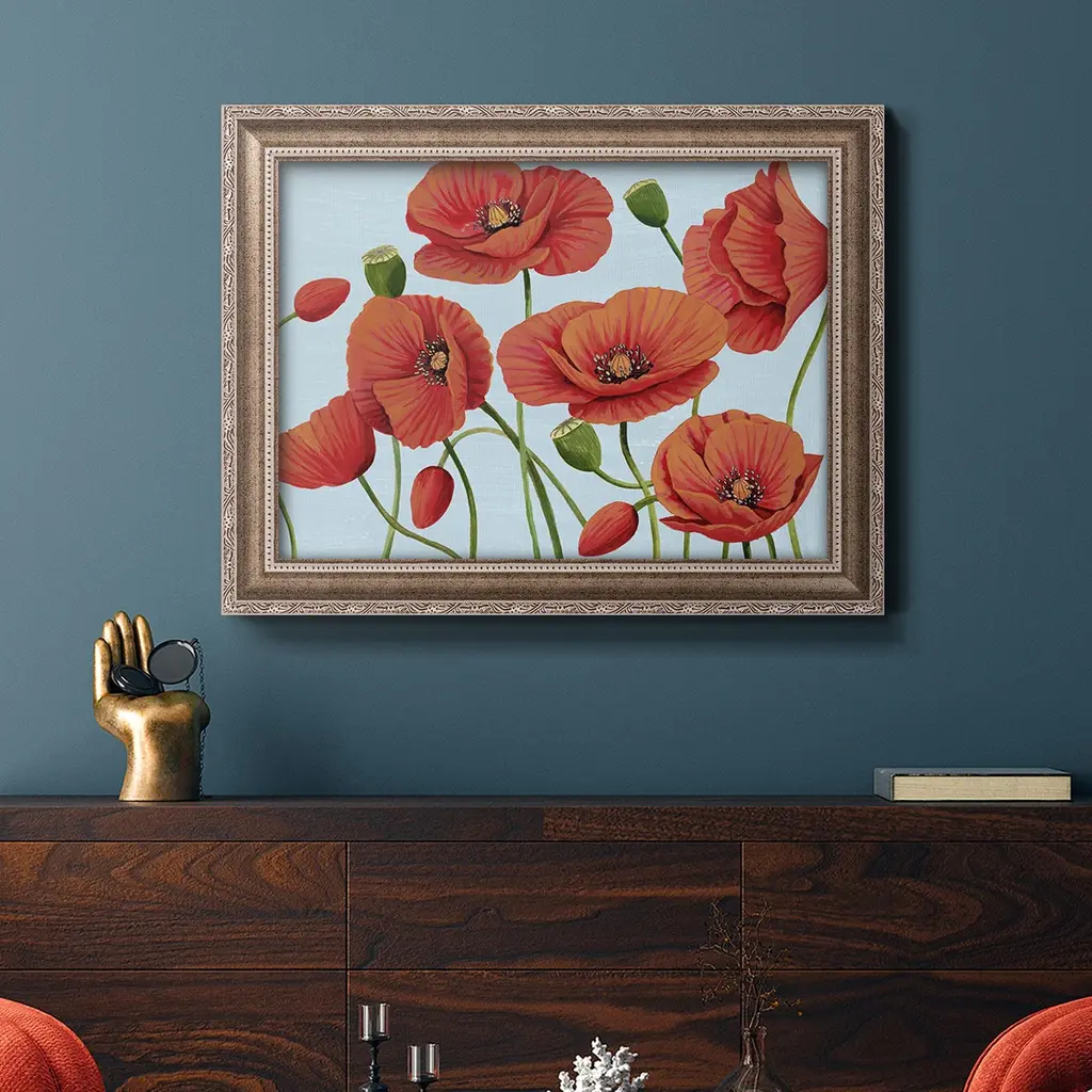 Poppy Topple III Premium Framed Canvas- Ready to Hang A Premium Framed Canvas created to last. Framed in distressed wood and available in an array of sizes and colors Featuring a beveled a solid wood stretcher bar, each piece comes ready to hand 3 SIZES AVAILABLE 16''X20'' - Overall Size 18'X27'' - Overall Size 24''x36'' - Overall Size Each piece is made to order. Each piece comes with hanging hardware. Made in the USA Ready to Hang Giclee Paper Print Acrylic Glass Beveled Matt Board