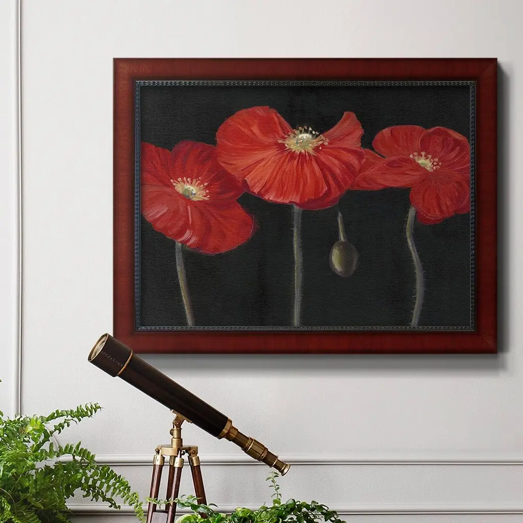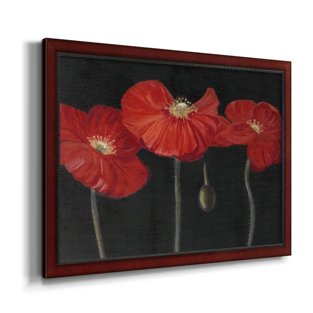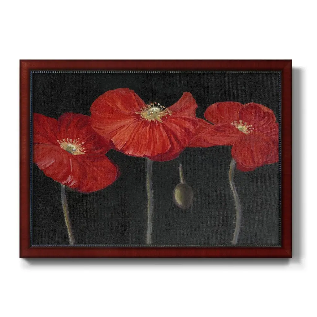 Poppy Trio I Premium Framed Canvas- Ready To Hang - 24x36 - Mahogany