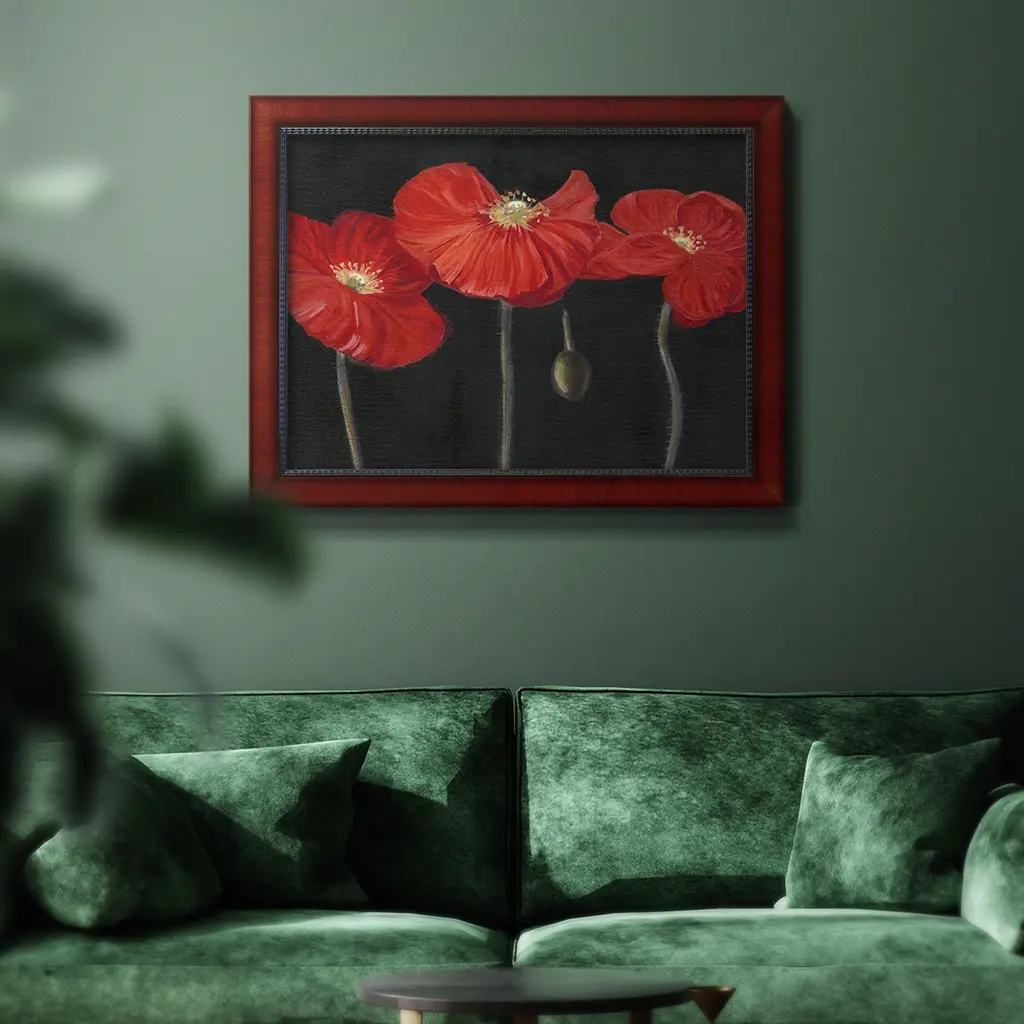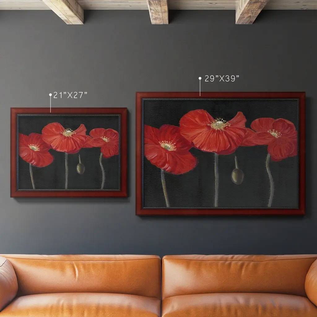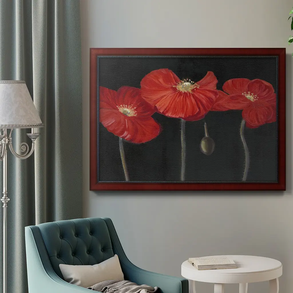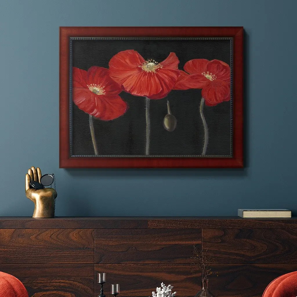 Poppy Trio I Premium Framed Canvas- Ready To Hang - 24x36 - Mahogany