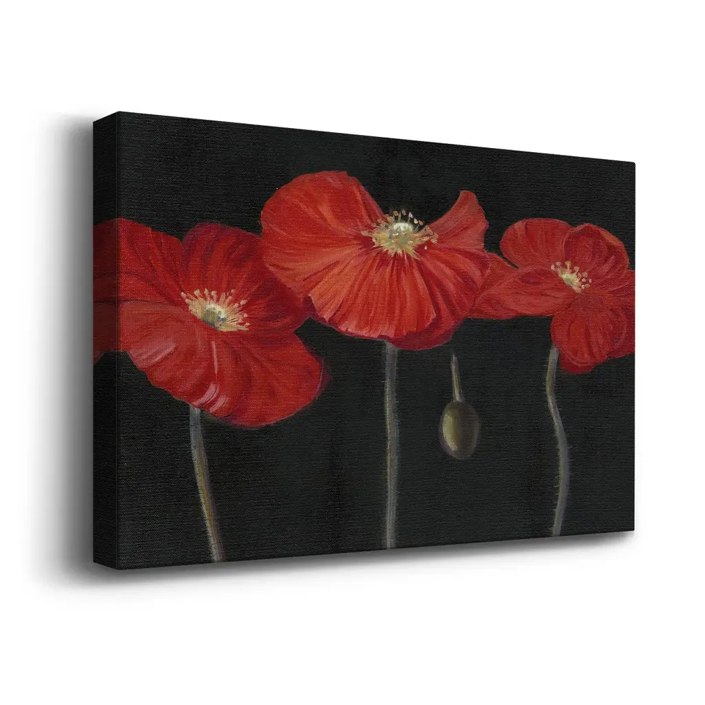 Poppy Trio I Premium Gallery Wrapped Canvas - Ready to Hang A premium hand stretched gallery wrapped canvas print created to last. Featuring a beveled a solid wood stretcher bar, each piece comes ready to hand 6 SIZES AVAILABLE 8''X12'' - Overall Size 12''X18'' - Overall Size 18''X27'' - Overall Size 24''x36'' - Overall Size 32''x48'' - Overall Size 40''x60'' - Overall Size Each piece is made to order. Built to Last Each piece comes ready to hang Solid wood stretcher Fade and Water resistant Made domestically
