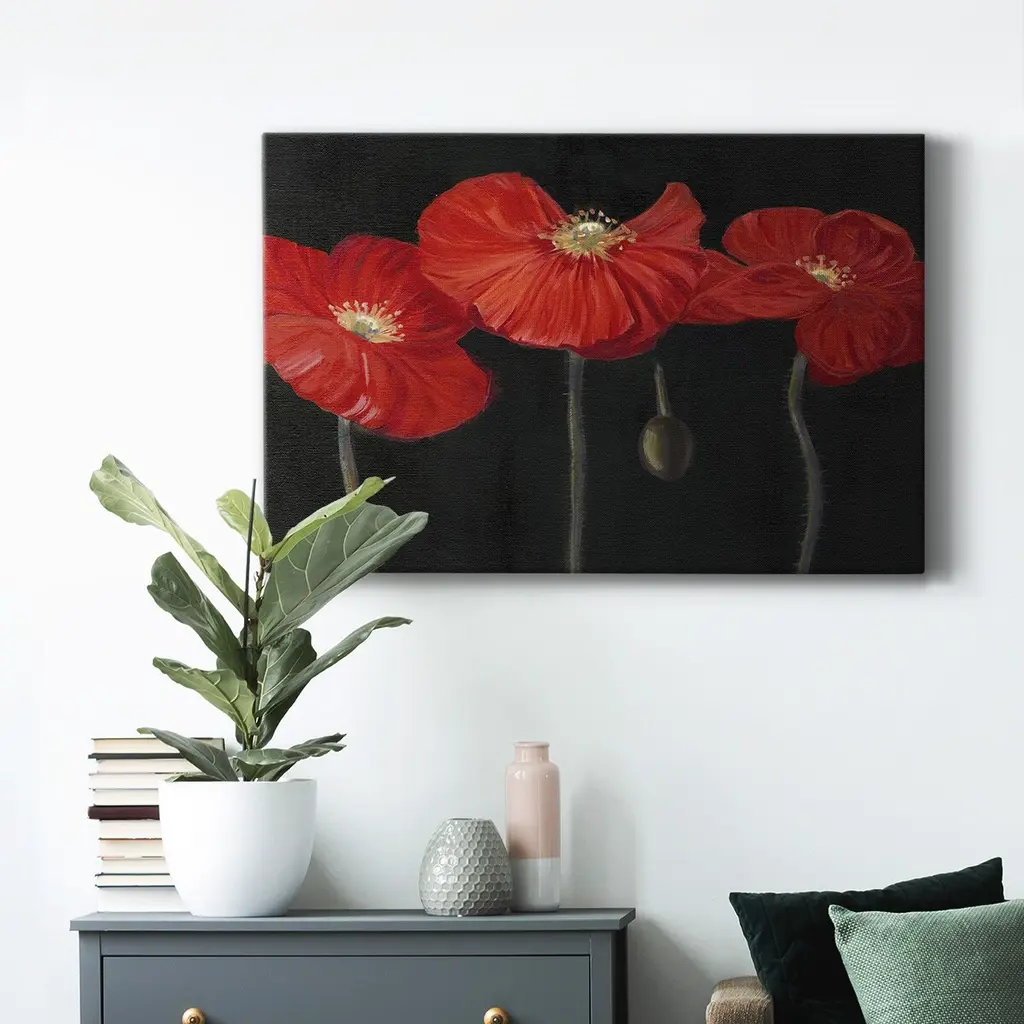 Poppy Trio I Premium Gallery Wrapped Canvas - Ready To Hang - 12x18