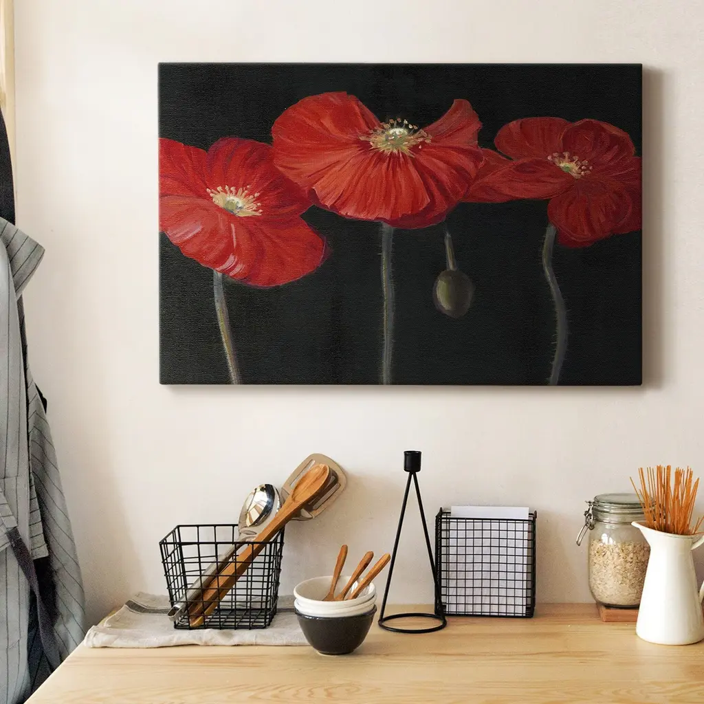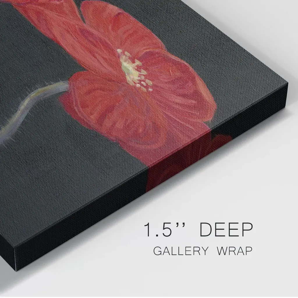 Poppy Trio I Premium Gallery Wrapped Canvas - Ready to Hang A premium hand stretched gallery wrapped canvas print created to last. Featuring a beveled a solid wood stretcher bar, each piece comes ready to hand 6 SIZES AVAILABLE 8''X12'' - Overall Size 12''X18'' - Overall Size 18''X27'' - Overall Size 24''x36'' - Overall Size 32''x48'' - Overall Size 40''x60'' - Overall Size Each piece is made to order. Built to Last Each piece comes ready to hang Solid wood stretcher Fade and Water resistant Made domestically