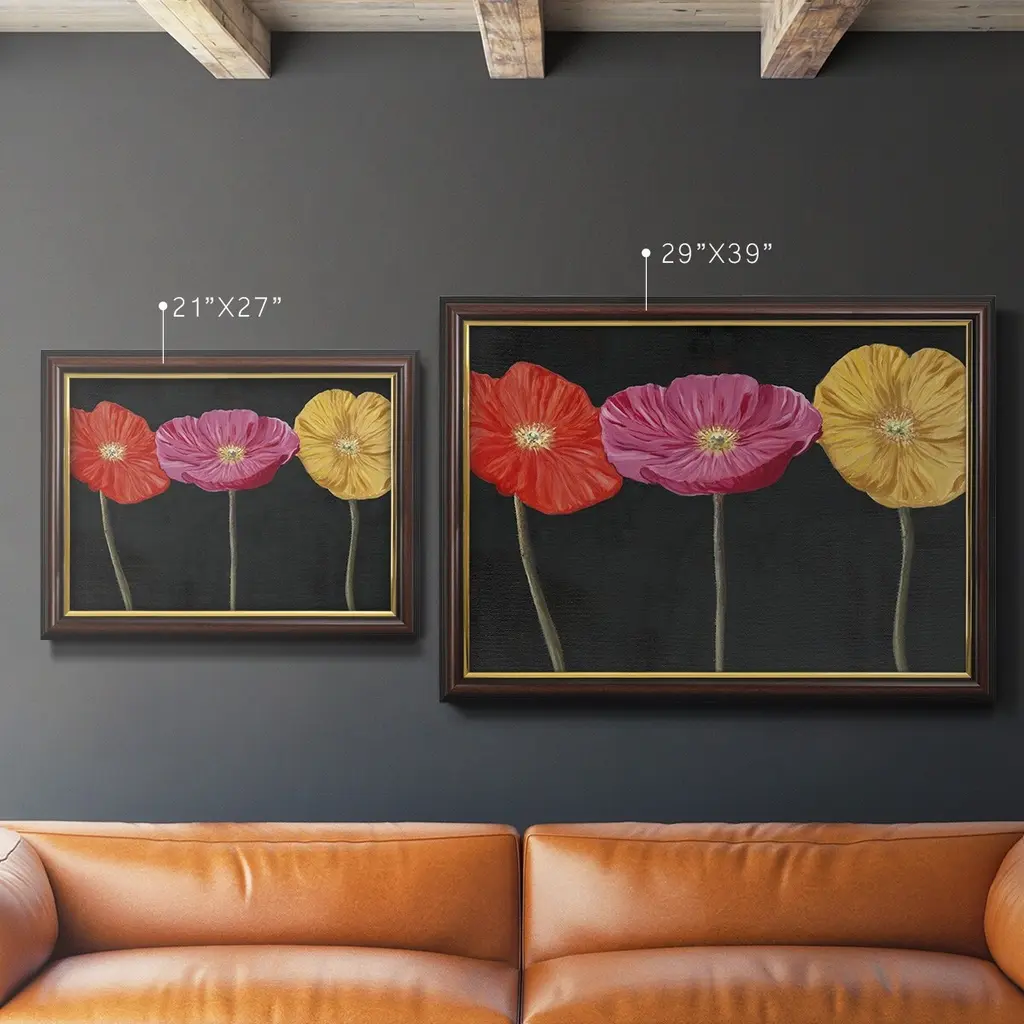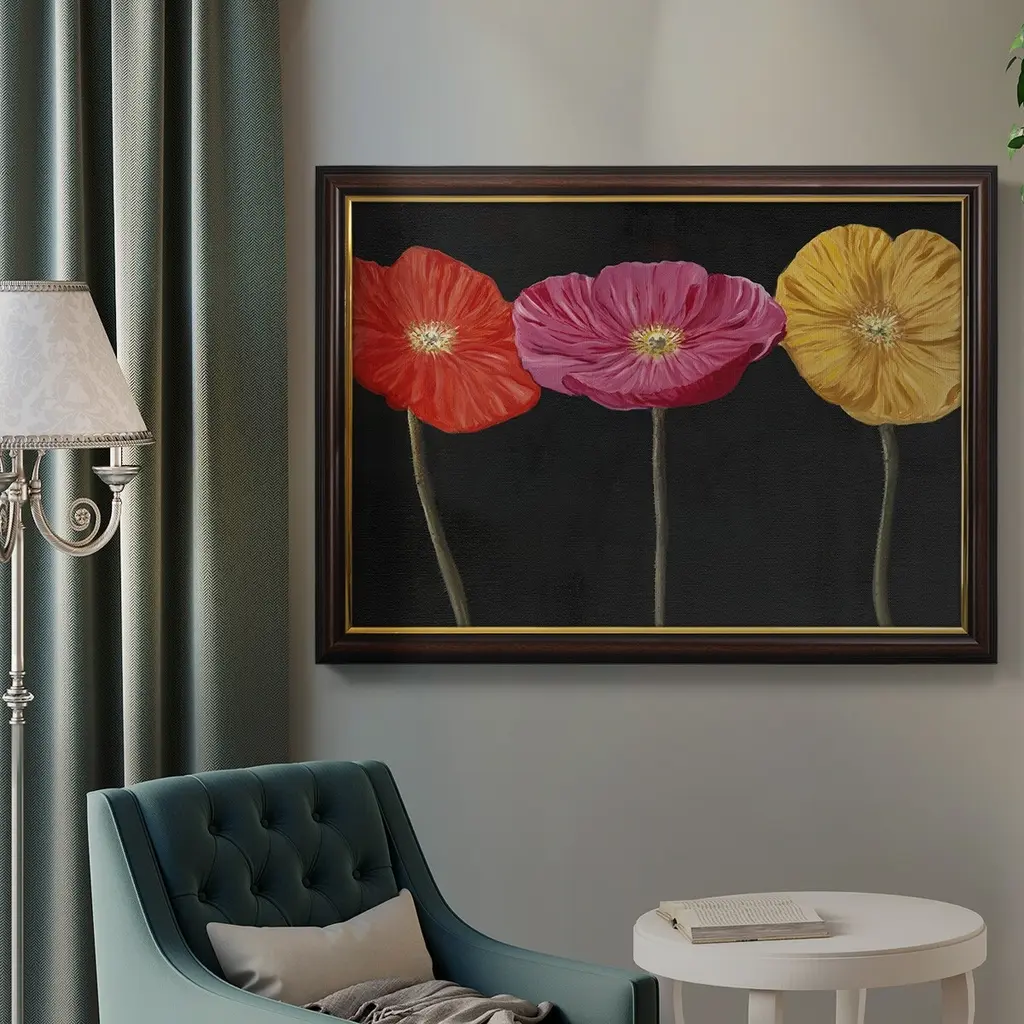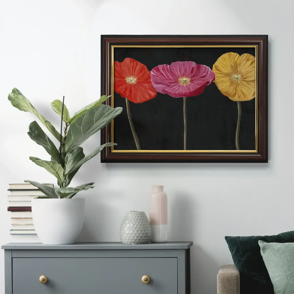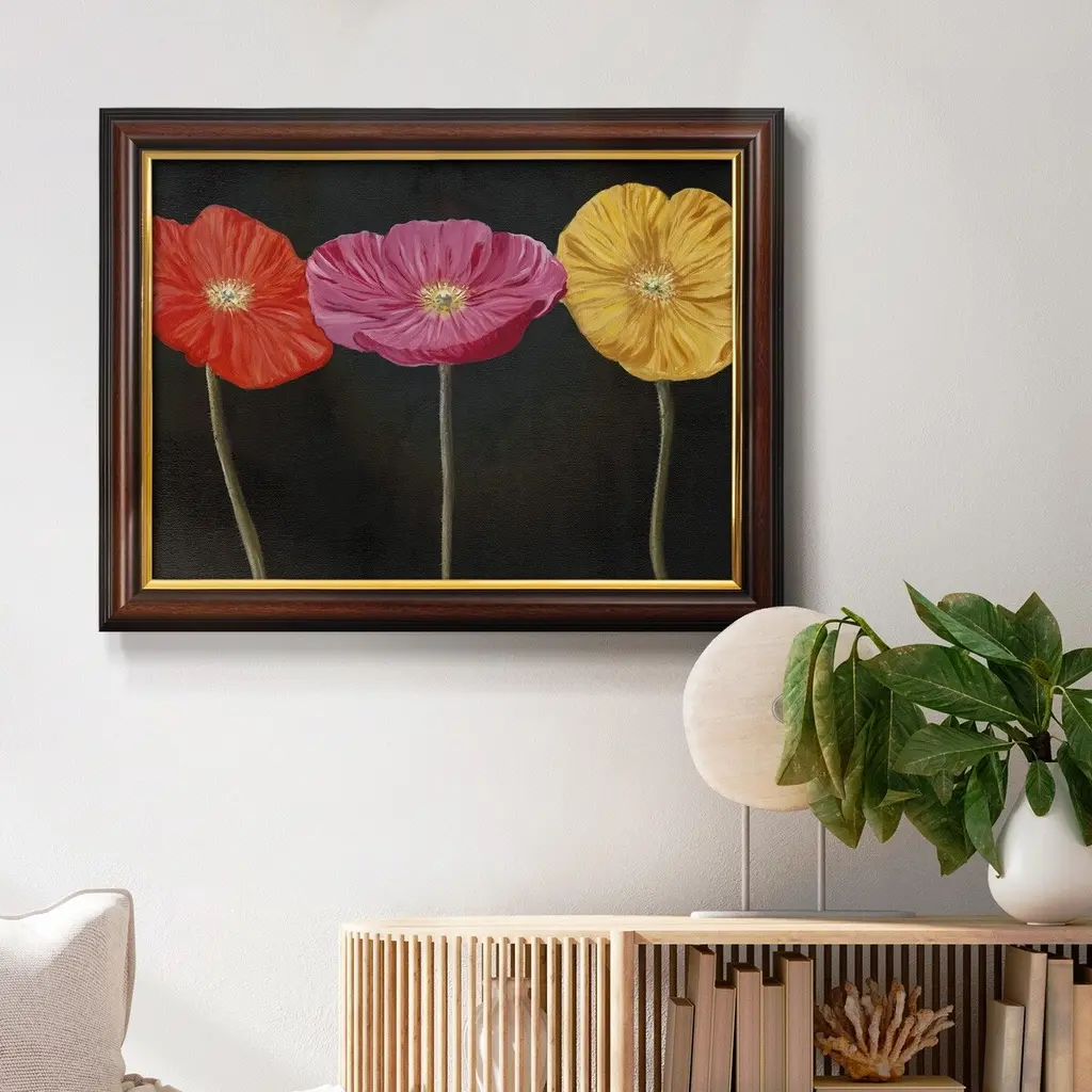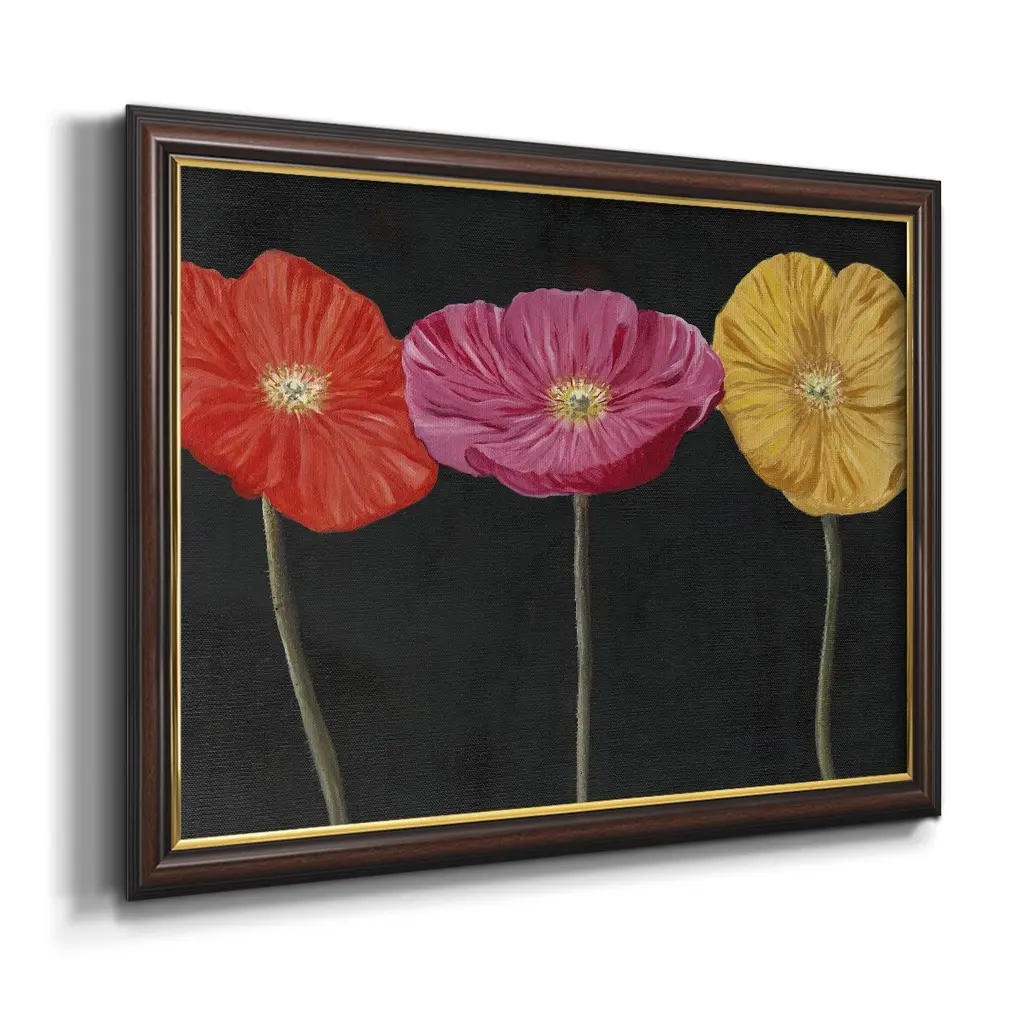 Poppy Trio Ii Premium Framed Canvas- Ready To Hang - 18x27 - Mahogany