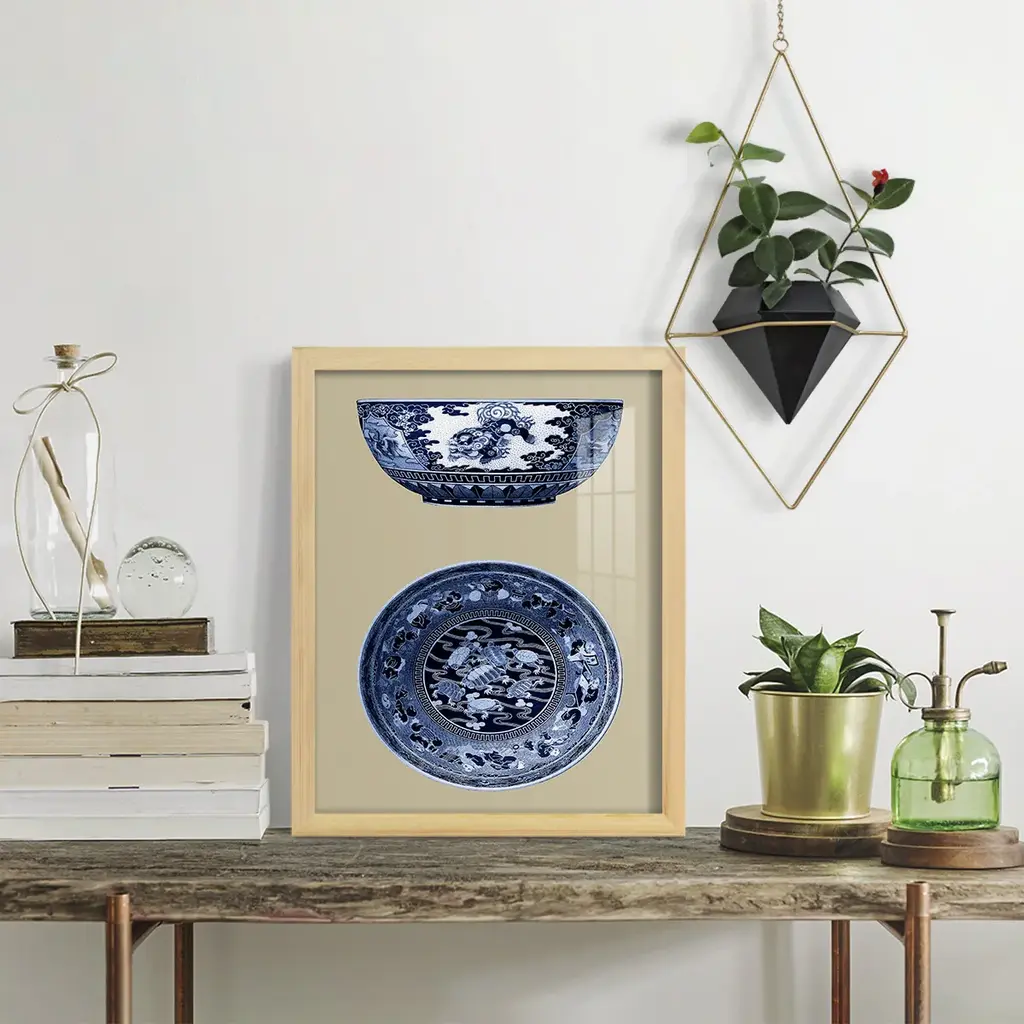 Porcelain In Blue And White I -Framed Print W/glass-Cherry Red - 12x15 - Natural