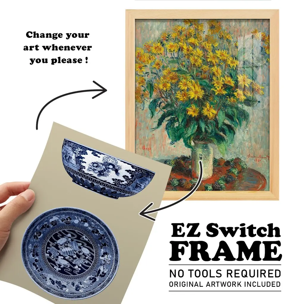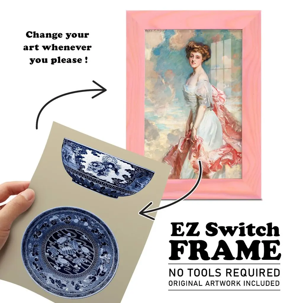 Porcelain in Blue and White I -EZ SWITCH Framed Print w/glass-Cherry Red A delightful, framed print. Featuring a solid wood frame with real wood glass. This premium print is giclee quality. In addition, every frame features a removable back and table top stand. This allows you to change your art in the future or to just stand the art on a table for a new look. We are sure you'll enjoy our new series of EZ SWITCH Framed Art. Solid Wood Frame Real Glass Removable / Replaceable Art Built in Tabletop Stand Sizes range from 4x6 up to 12x15 - buy just one or pair them up as sets as you see fit.