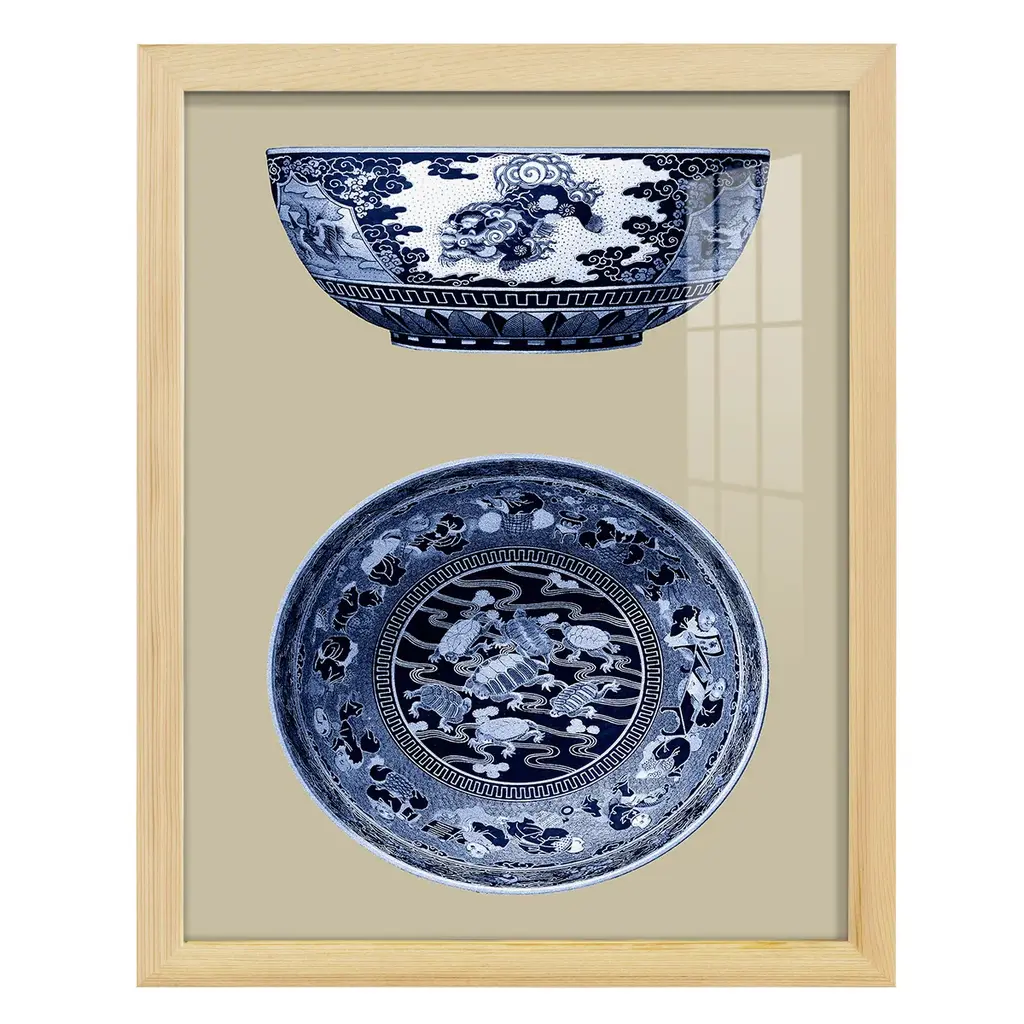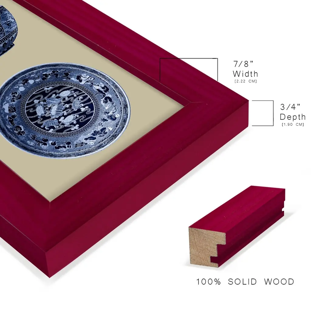 Porcelain In Blue And White I -Framed Print W/glass-Cherry Red - 4X6 - Natural