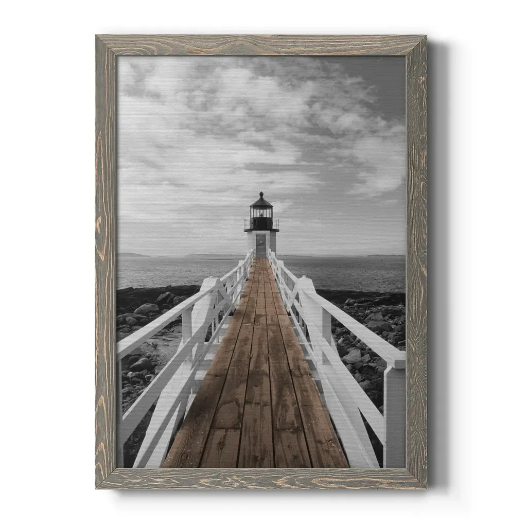 Port Clyde Lighthouse-Premium Framed Canvas - Ready to Hang Framed in distressed wood and available in an array of sizes and colors Each piece is joined and assembled by hand and comes ready to hang FRAMED GICLEE CANVAS HAND STRETCHED GALLERY WRAPPED CANVAS READY TO HANG MADE IN THE USA SOLID WOOD FRAME MADE IN USA FADE RESISTANT GICLEE PRINTING on Canvas