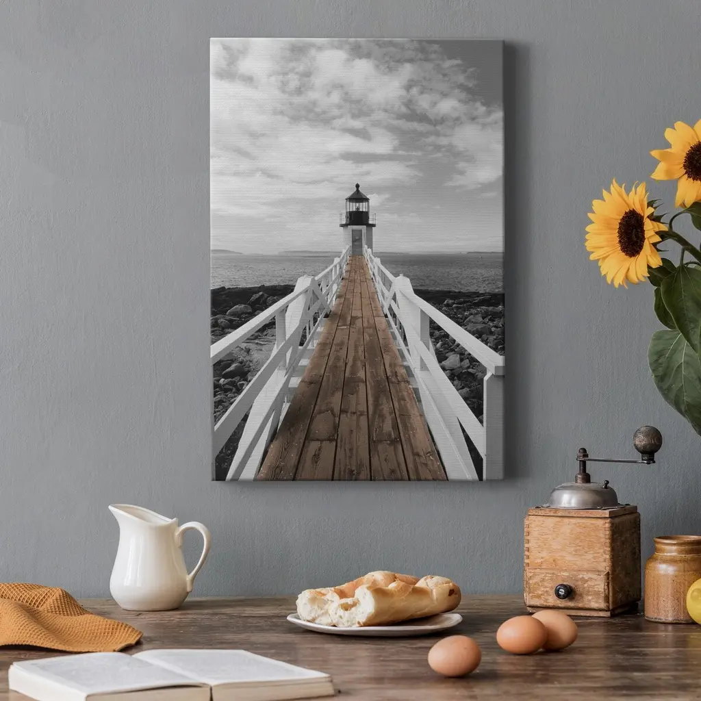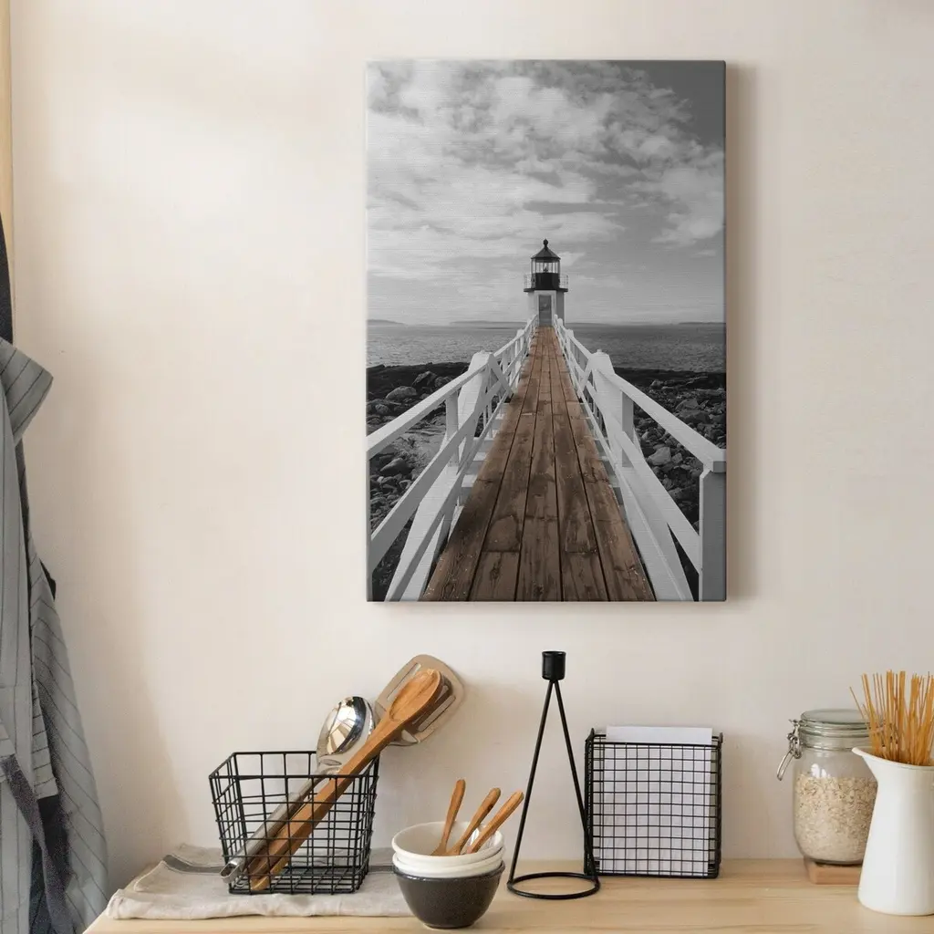 Port Clyde Lighthouse Premium Gallery Wrapped Canvas - Ready to Hang A premium hand stretched gallery wrapped canvas print created to last. Featuring a beveled a solid wood stretcher bar, each piece comes ready to hand 5 SIZES AVAILABLE 8''X12'' - Overall Size 16'X20'' - Overall Size 24''x32'' - Overall Size 30''x40'' - Overall Size 36''x48'' - Overall Size Each piece is made to order. Built to Last Each piece comes ready to hang Solid wood stretcher Fade and Water resistant Made domestically
