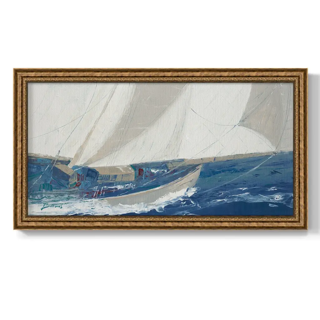 Port to Port Premium Framed Canvas- Ready to Hang A Premium Framed Canvas created to last. Framed in distressed wood and available in an array of sizes and colors Featuring a beveled a solid wood stretcher bar, each piece comes ready to hand 3 SIZES AVAILABLE 21''X37'' - Overall Size 25''X45'' - Overall Size 29''x53'' - Overall Size Each piece is made to order. Each piece comes with hanging hardware. Made in the USA Ready to Hang Giclee Paper Print Acrylic Glass Beveled Matt Board