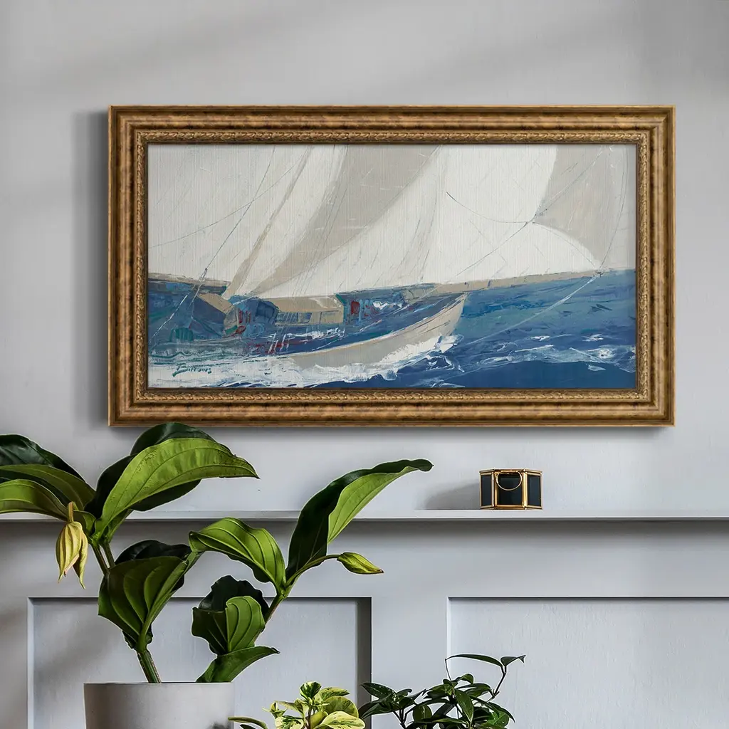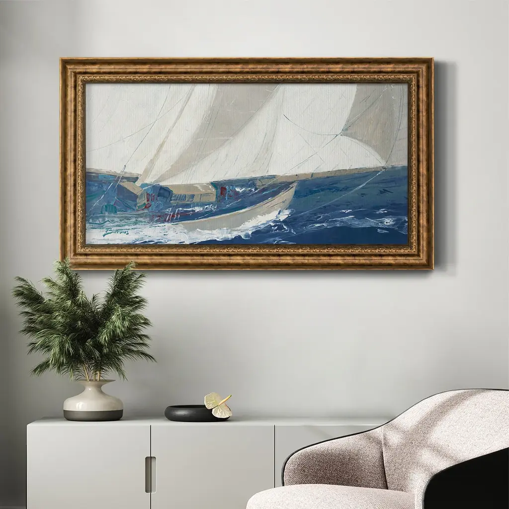 Port to Port Premium Framed Canvas- Ready to Hang A Premium Framed Canvas created to last. Framed in distressed wood and available in an array of sizes and colors Featuring a beveled a solid wood stretcher bar, each piece comes ready to hand 3 SIZES AVAILABLE 21''X37'' - Overall Size 25''X45'' - Overall Size 29''x53'' - Overall Size Each piece is made to order. Each piece comes with hanging hardware. Made in the USA Ready to Hang Giclee Paper Print Acrylic Glass Beveled Matt Board