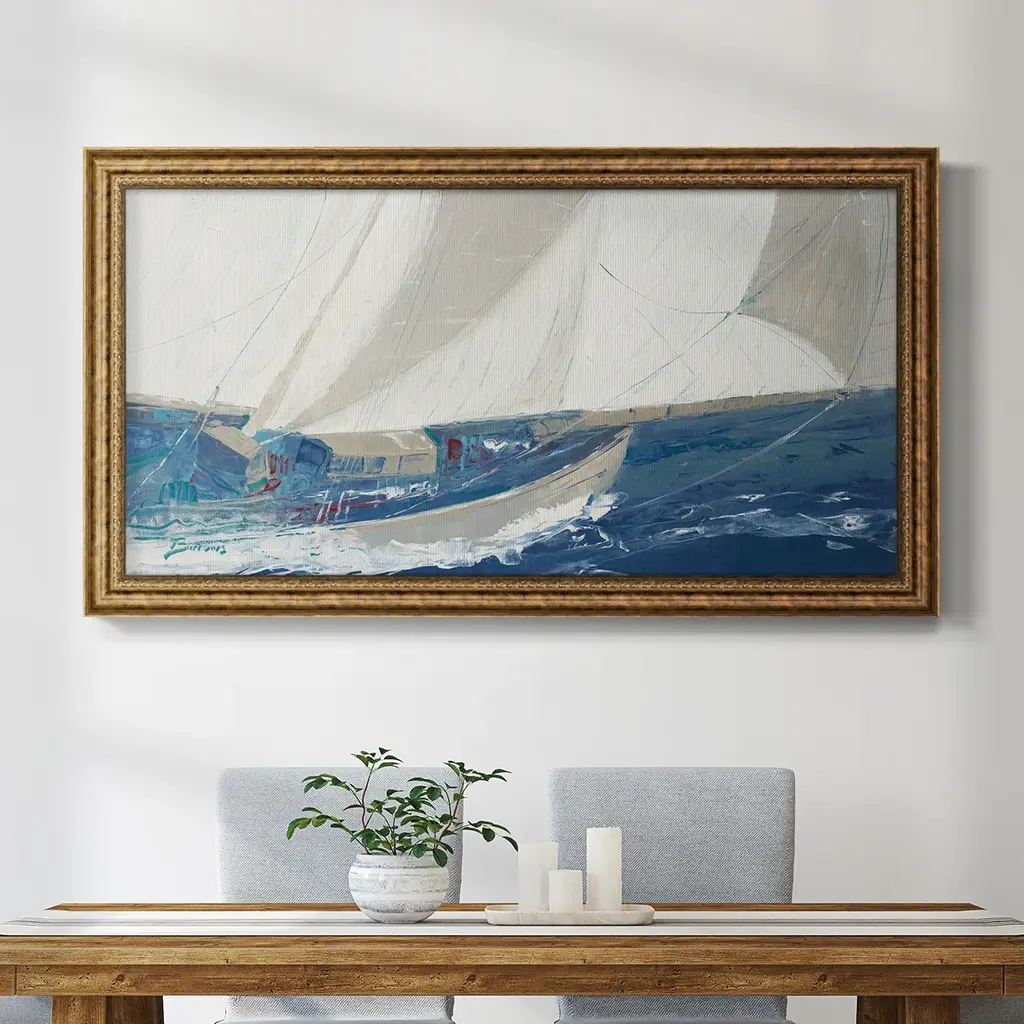 Port to Port Premium Framed Canvas- Ready to Hang A Premium Framed Canvas created to last. Framed in distressed wood and available in an array of sizes and colors Featuring a beveled a solid wood stretcher bar, each piece comes ready to hand 3 SIZES AVAILABLE 21''X37'' - Overall Size 25''X45'' - Overall Size 29''x53'' - Overall Size Each piece is made to order. Each piece comes with hanging hardware. Made in the USA Ready to Hang Giclee Paper Print Acrylic Glass Beveled Matt Board