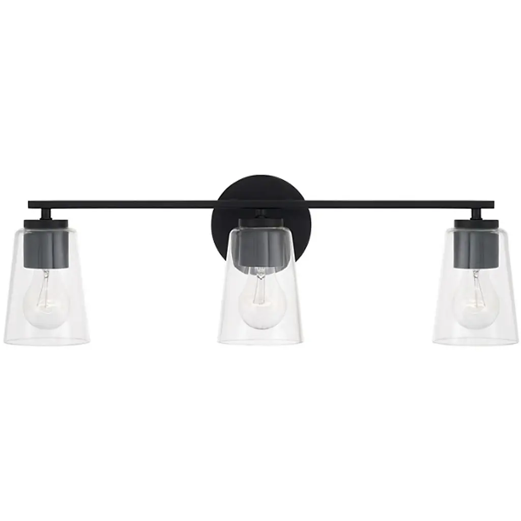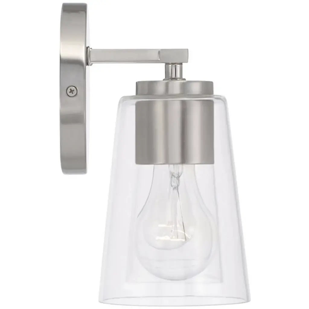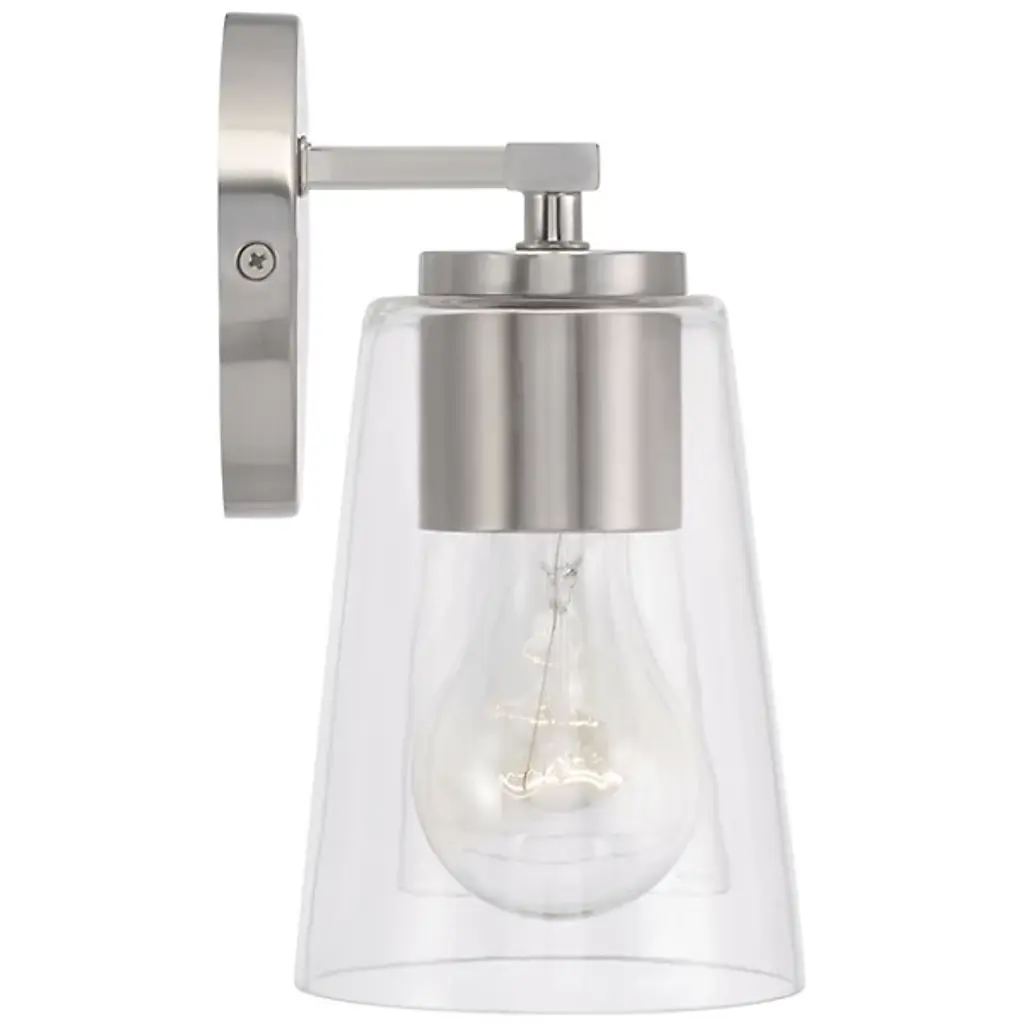 Featuring distinct lines and mid-century modern details, the Portman Vanity Light by Capital Lighting brings a sharp sense of style to your living space. Cylindrical shades of glass house brilliant bulbs and form a classic aesthetic. A lovely, linear metal framework is secured by a disc-shaped backplate at your wall. The Portman Vanity Light’s brightness level can be easily adjusted when you pair this fixture with a standard dimmer.