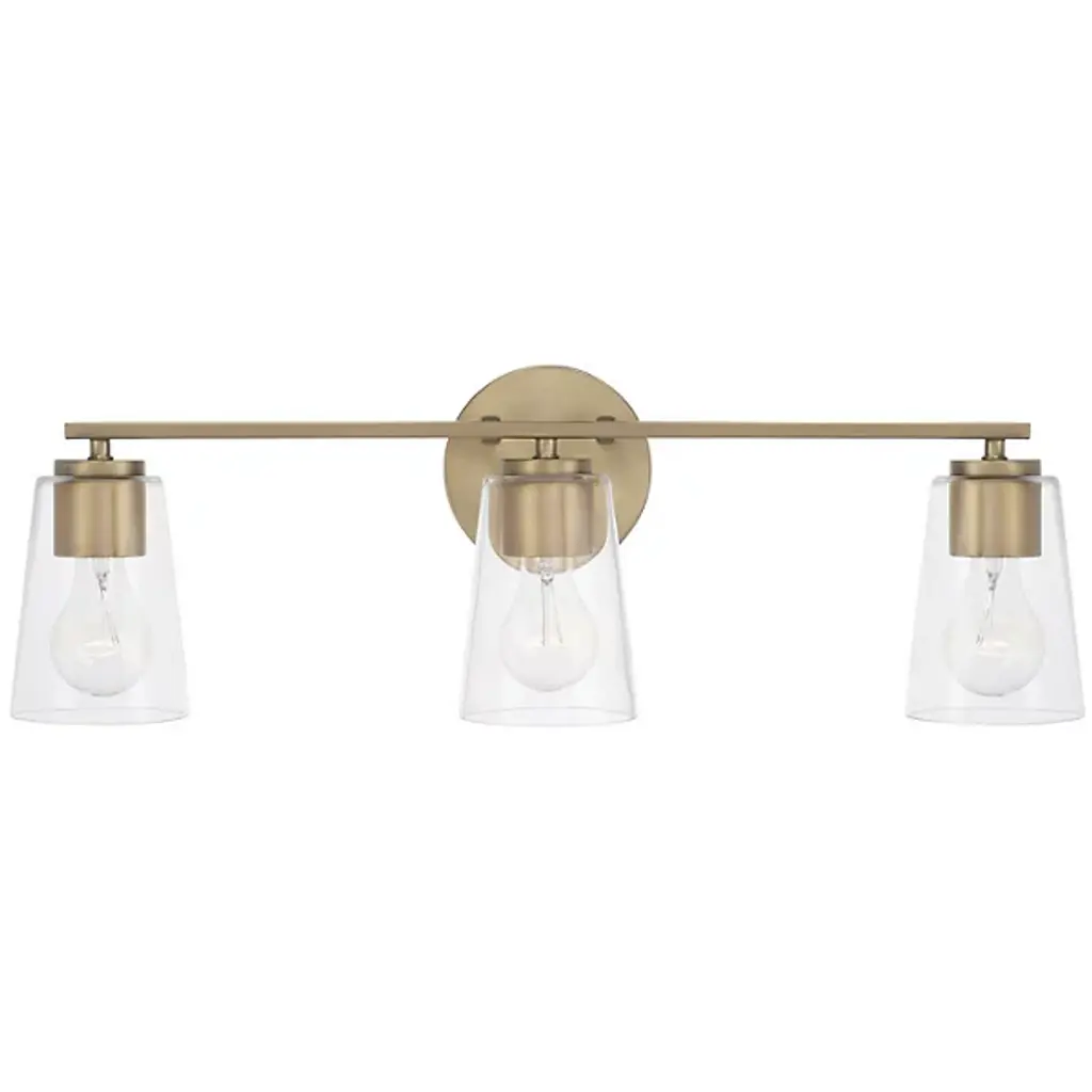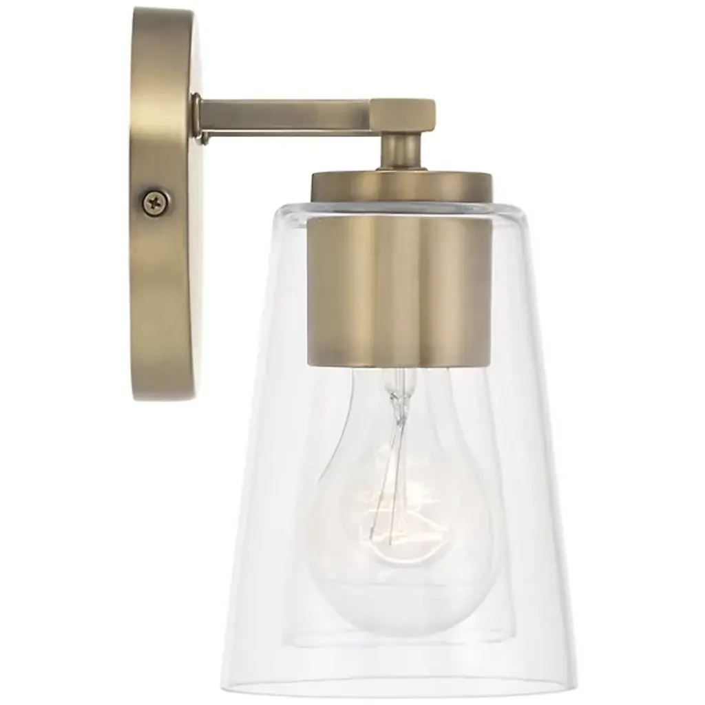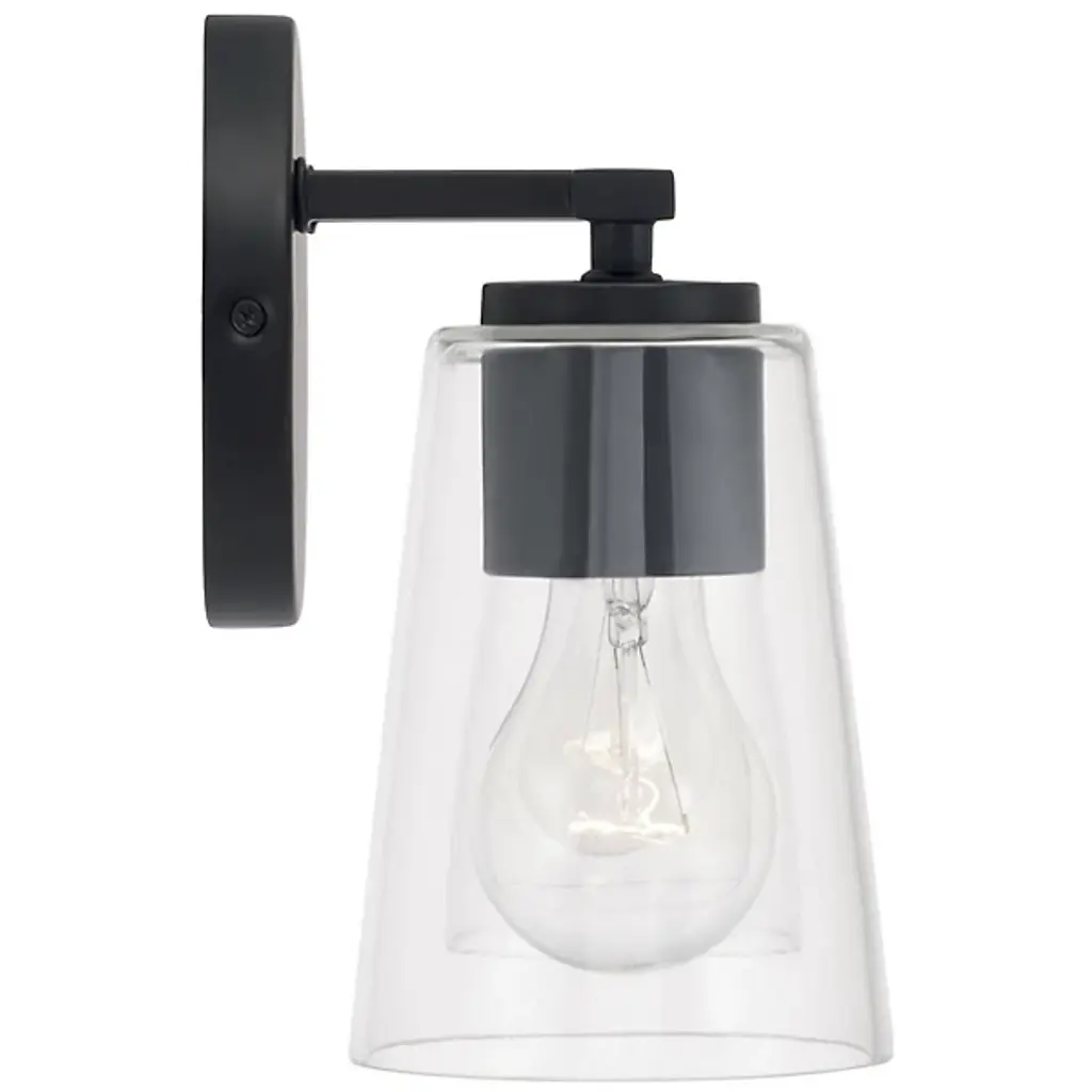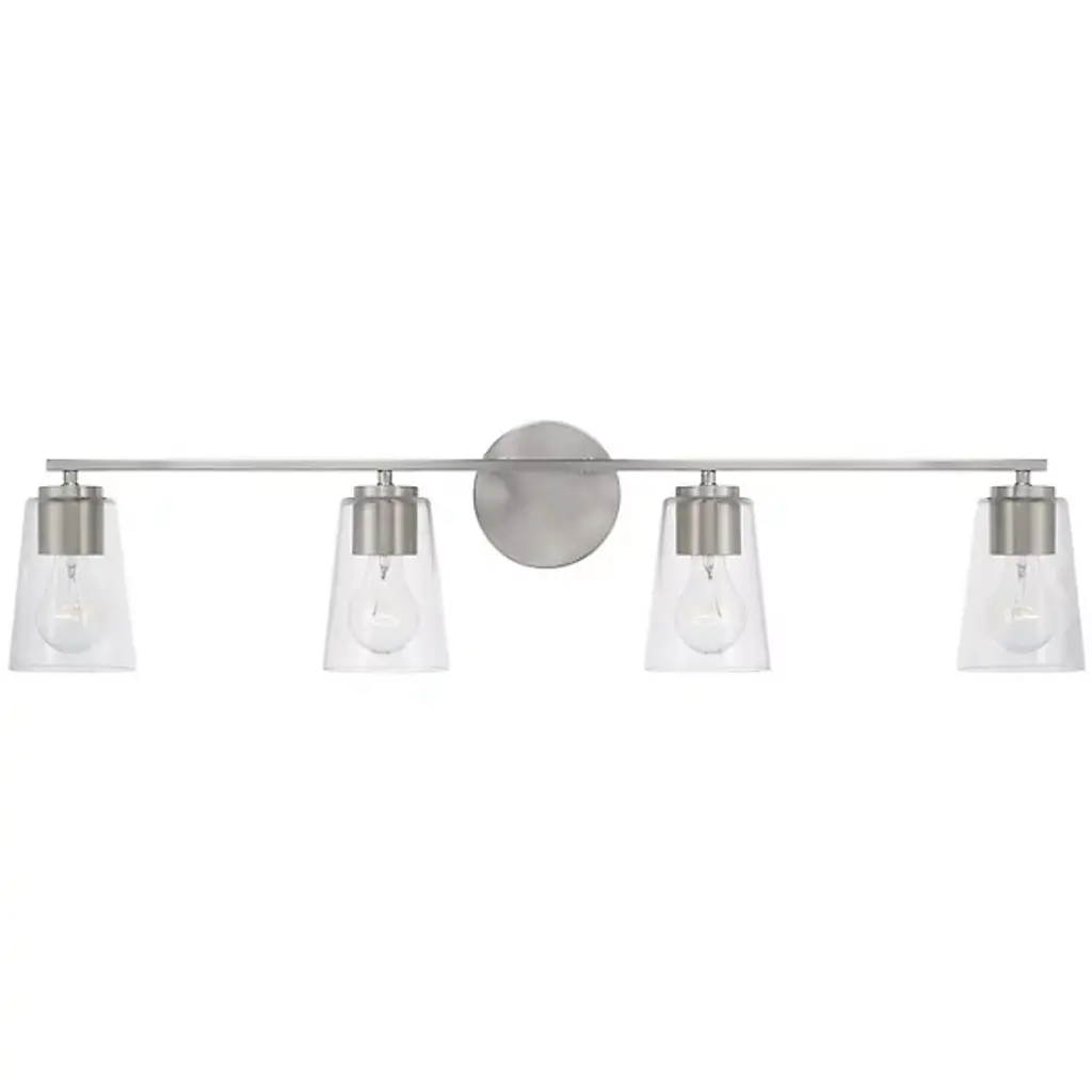Featuring distinct lines and mid-century modern details, the Portman Vanity Light by Capital Lighting brings a sharp sense of style to your living space. Cylindrical shades of glass house brilliant bulbs and form a classic aesthetic. A lovely, linear metal framework is secured by a disc-shaped backplate at your wall. The Portman Vanity Light’s brightness level can be easily adjusted when you pair this fixture with a standard dimmer.