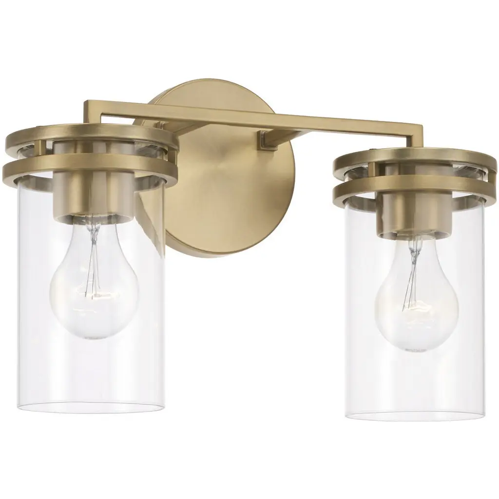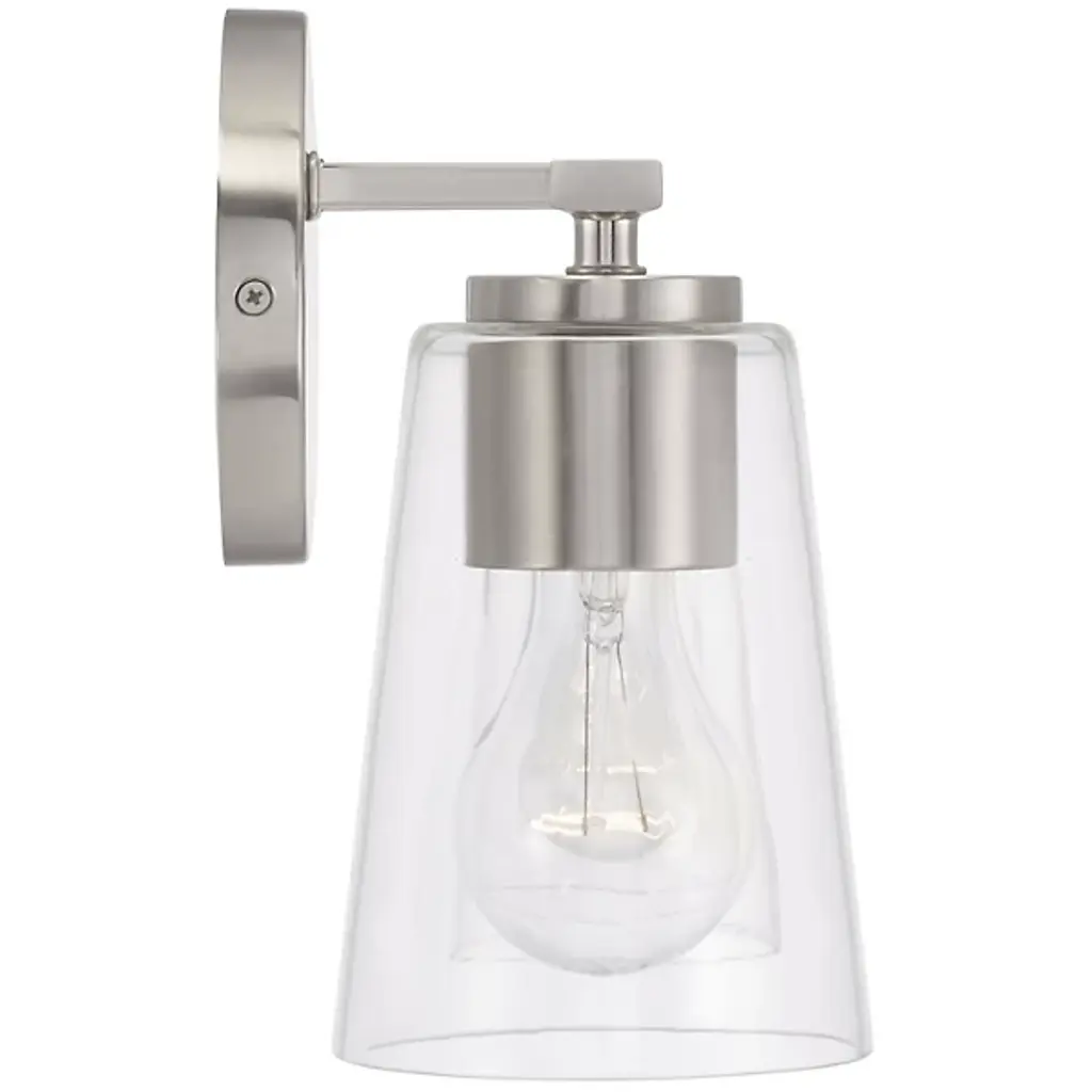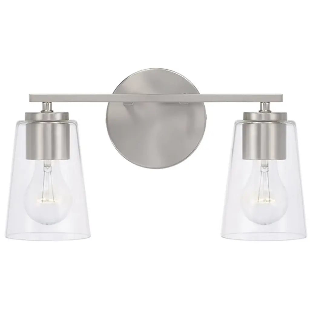 Featuring distinct lines and mid-century modern details, the Portman Vanity Light by Capital Lighting brings a sharp sense of style to your living space. Cylindrical shades of glass house brilliant bulbs and form a classic aesthetic. A lovely, linear metal framework is secured by a disc-shaped backplate at your wall. The Portman Vanity Light’s brightness level can be easily adjusted when you pair this fixture with a standard dimmer.