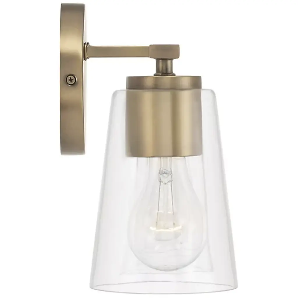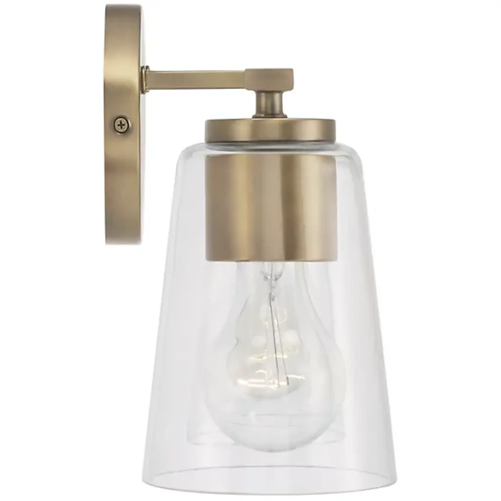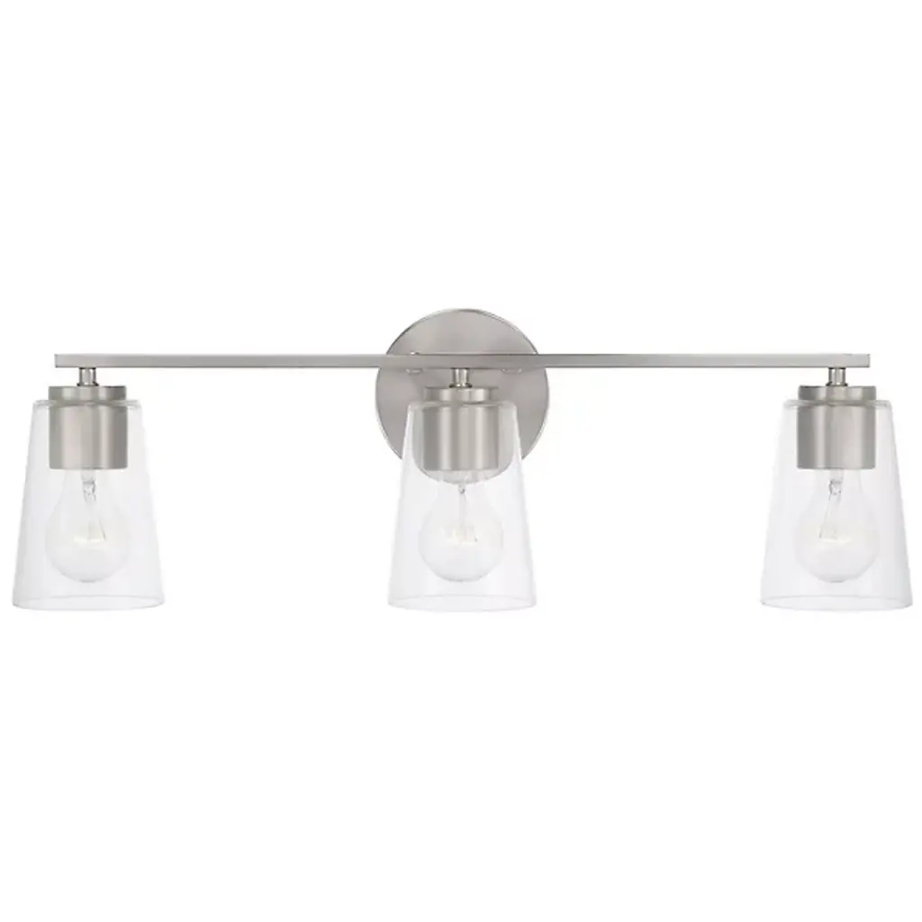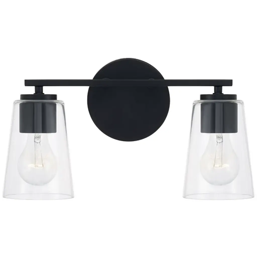 Featuring distinct lines and mid-century modern details, the Portman Vanity Light by Capital Lighting brings a sharp sense of style to your living space. Cylindrical shades of glass house brilliant bulbs and form a classic aesthetic. A lovely, linear metal framework is secured by a disc-shaped backplate at your wall. The Portman Vanity Light’s brightness level can be easily adjusted when you pair this fixture with a standard dimmer.