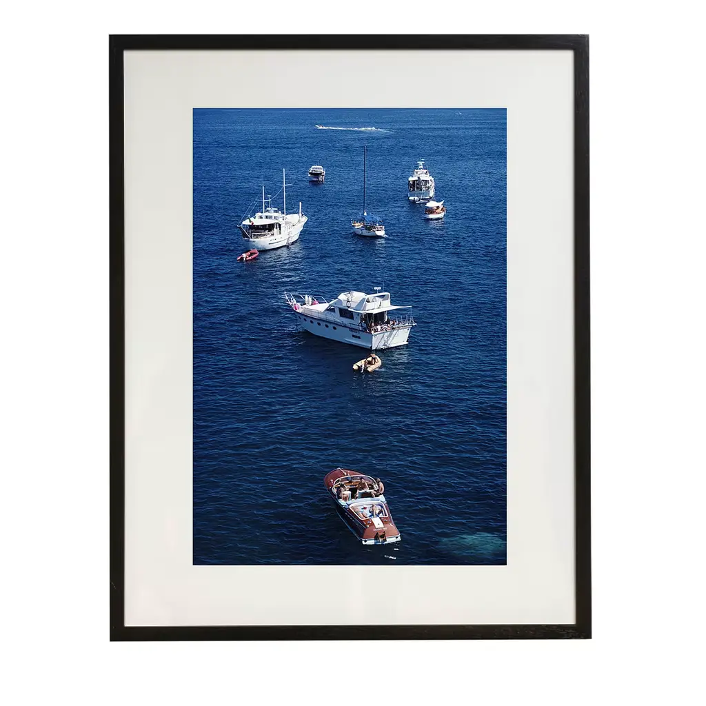 This picture captures a candid moment of daily life in the Tuscan harbor of Porto Ercole back in August 1967. Reproduction of the original photo by Slim Aarons, this fascinating print (30x40cm) encapsulates a realistic dash of vintage Mediterranean allure with its dynamic traffic of boats and cars. Unrivaled quality is guaranteed by the C-type print, capable of vividly enhancing shades and details. Wooden frame is included. Prints from the Slim Aarons Archive, owned and housed by Getty Images. All photographs are printed and authorised by the Getty Images Gallery, London. Accompanied by certificate of authenticity.