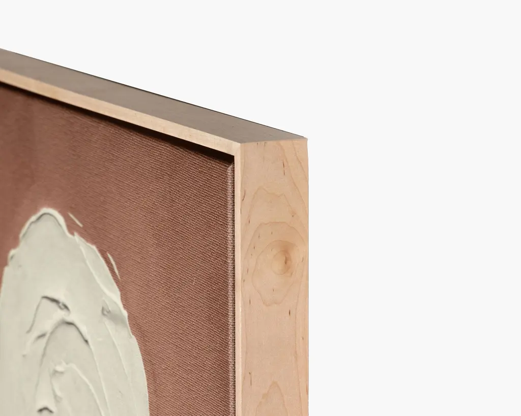 Inspired by dimensional abstracted works and produced in full texture with a spot varnish to bring it all to life. By Coup d'Esprit. Mounting hardware is included with detailed instructions.. Size shown is print size, add frame thickness to print size for total frame size Weight: 20 lbs Matte Canvas Acrylic Glass Receives UPS delivery