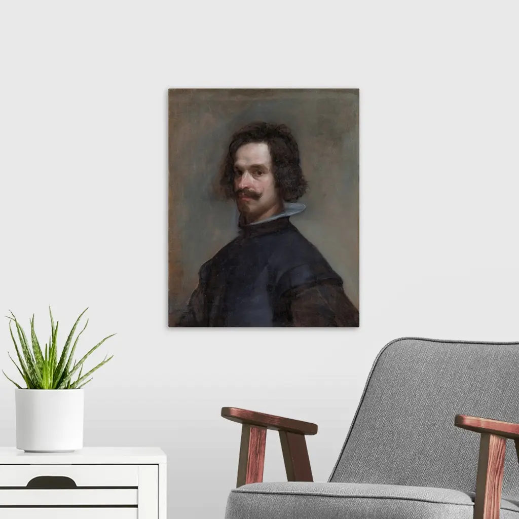 This portrait is a study for the figure who gazes out from the far right of Velazquez's?Surrender of Breda?(ca. 1635, Museo del Prado, Madrid). That large canvas, depicting one of the most famous military successes in Philip IV's reign, integrates a number of portraits. Although it has been argued that this man is none other than the artist, scholars have questioned whether the painter would have dared to include himself as a bystander at the historic military victory. The surviving evidence suggests that Velazquez rarely made studies for his larger works and did not make oil studies for the other figures in?Surrender at Breda. However, a preparatory step such as this work would have made it easier for the artist to include an image of himself in the picture. The canvas may have remained in his studio; a portrait of Diego Velazquez, clothes to be finished is listed in a posthumous inventory of the artist's possessions.
