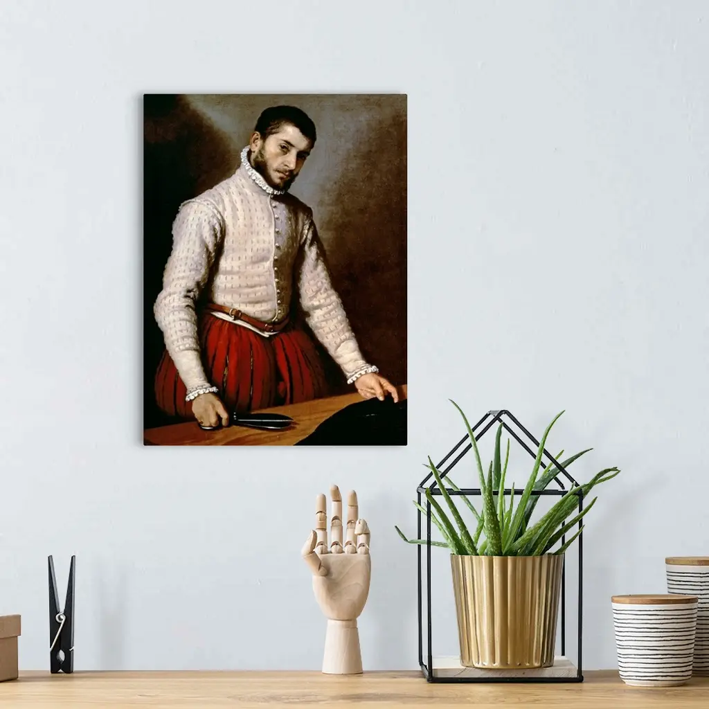 XCF966 Portrait of a Man (The Tailor) c.1570 (oil on canvas) by Moroni, Giovanni Battista (c.1525-78); 97.8x74.9 cm; National Gallery, London, UK; Italian, out of copyright
