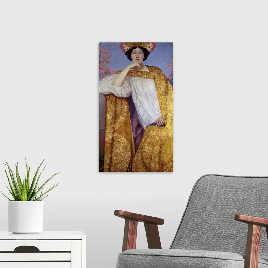 Portrait Of A Woman In A Golden Dress wall art for home and office decor. Discover canvas art prints, photos, mural, big canvas art and framed wall art in GreatBigCanvas.com's varied collections.