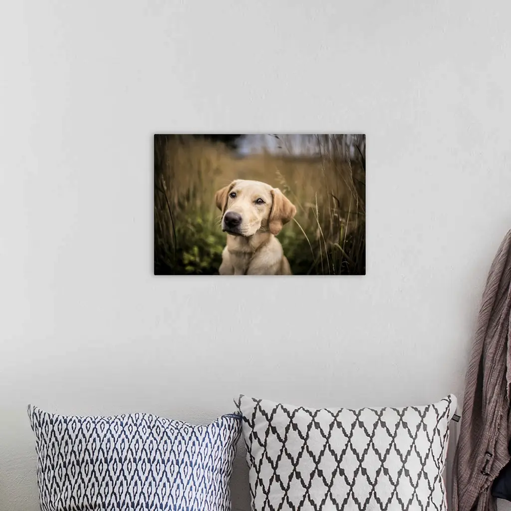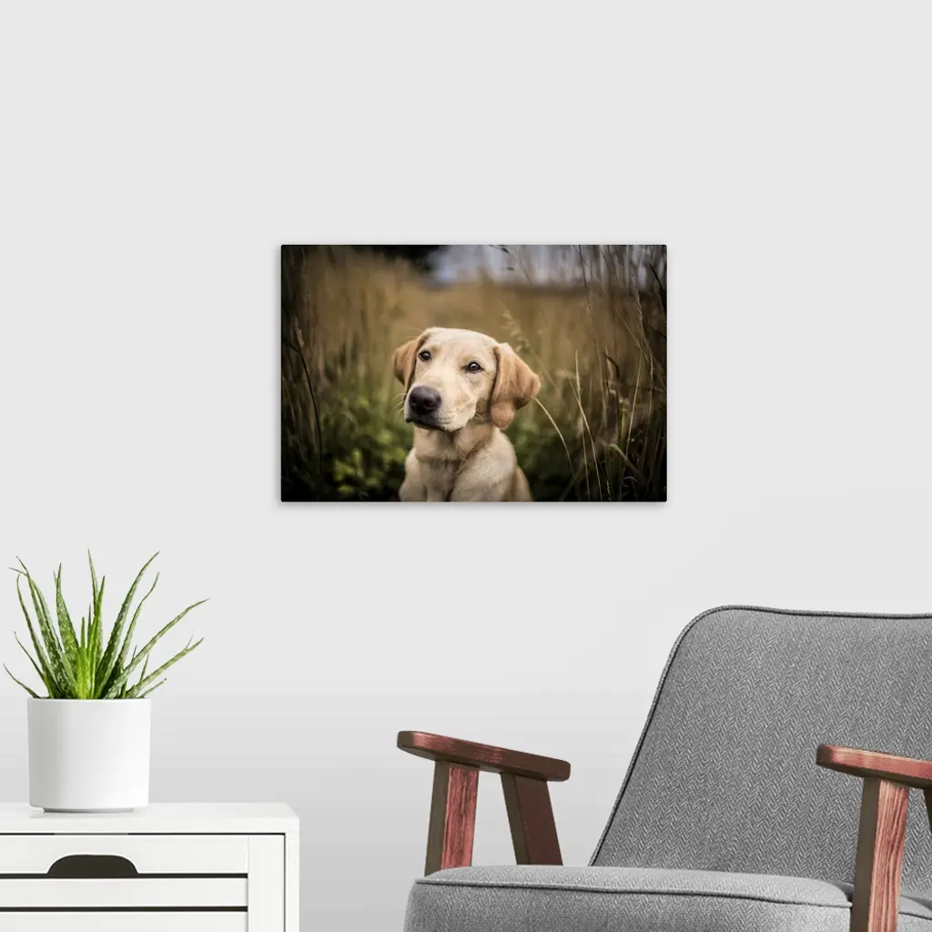Portrait of a young Golden Labrador sitting in a field, United Kingdom, Europe