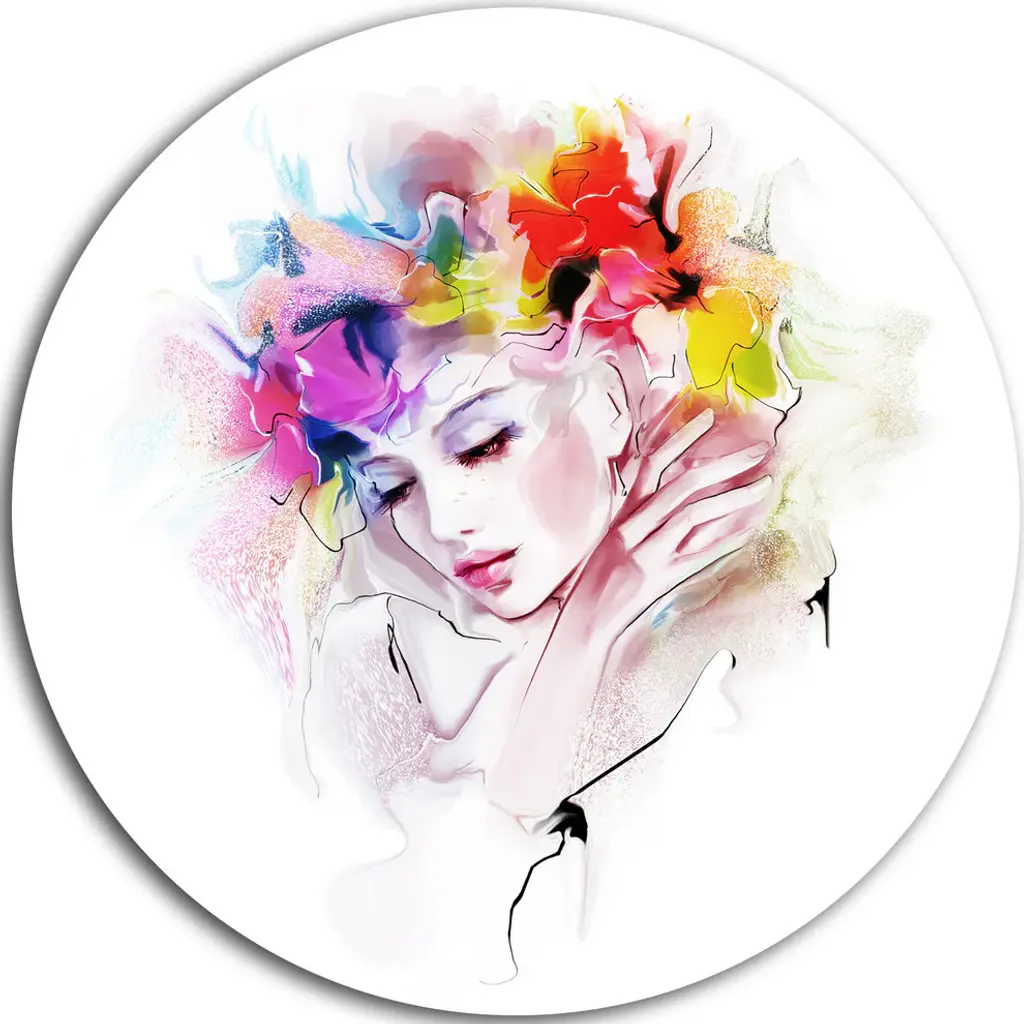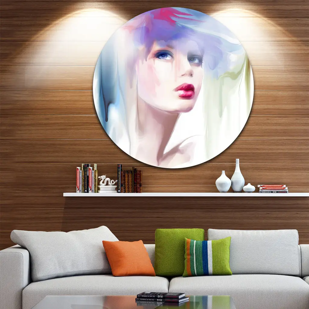 Bring Contemporary Abstraction to your home with this large Circle Metal wall art. This Portrait of Beautiful Girl Metal Artwork makes it the focal point of any room or office. - White Gloss Coating ensures colors are extra vibrant with light reflection.- Aluminum grade Sheet Metal with 1 inch mounting frame on the back giving the illusion that the artwork is floating on the wall..- Mounting Brackets are included along with instructions.- High Quality Digital images are created directly into a glossy aluminum panel producing a stunning and captivating print into the glossy finish of the metal.- Water, Fire and Scratch resistant HD Aluminum panels.- Looks better than any photo paper and guaranteed to last at least 20 years- Easy to clean with a microfiber cloth. Colors are far superior to regular Canvas Art. - Easy to Hang