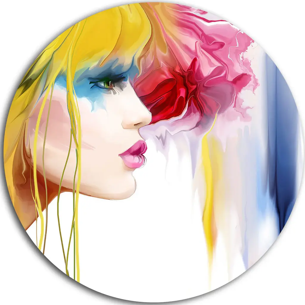 Portrait Of Beautiful Girl, Portrait Disc Metal Wall Art, 36"