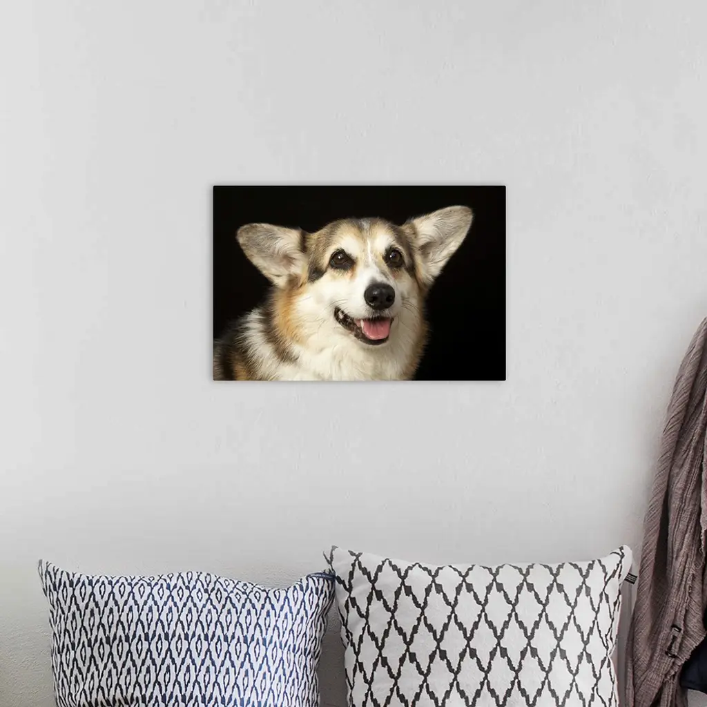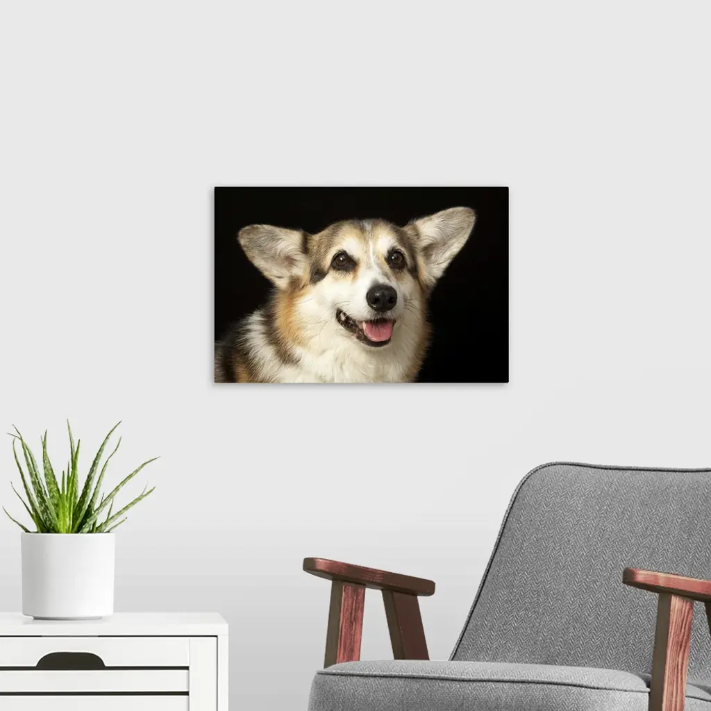 Portrait of black, brown and white Corgi wall art for home and office decor. Discover canvas art prints, photos, mural, big canvas art and framed wall art in GreatBigCanvas.com's varied collections.