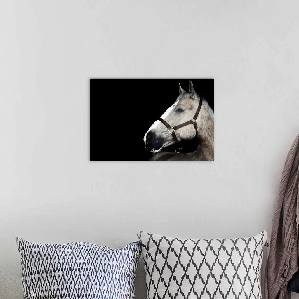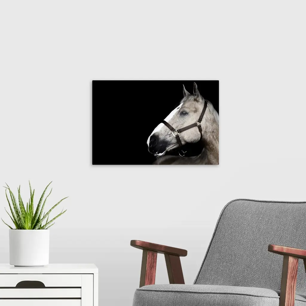 Portrait of horse on black background. wall art for home and office decor. Discover canvas art prints, photos, mural, big canvas art and framed wall art in GreatBigCanvas.com's varied collections.