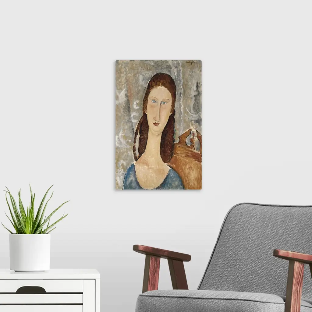 CH378370 Portrait of Jeanne Hebuterne (oil on canvas) by Modigliani, Amedeo (1884-1920); Private Collection; (add.info.: Jeanne Hebuterne (1898-1920), artist, common-law wife of Modigliani;); Photo .... Christie's Images; Italian, out of copyright