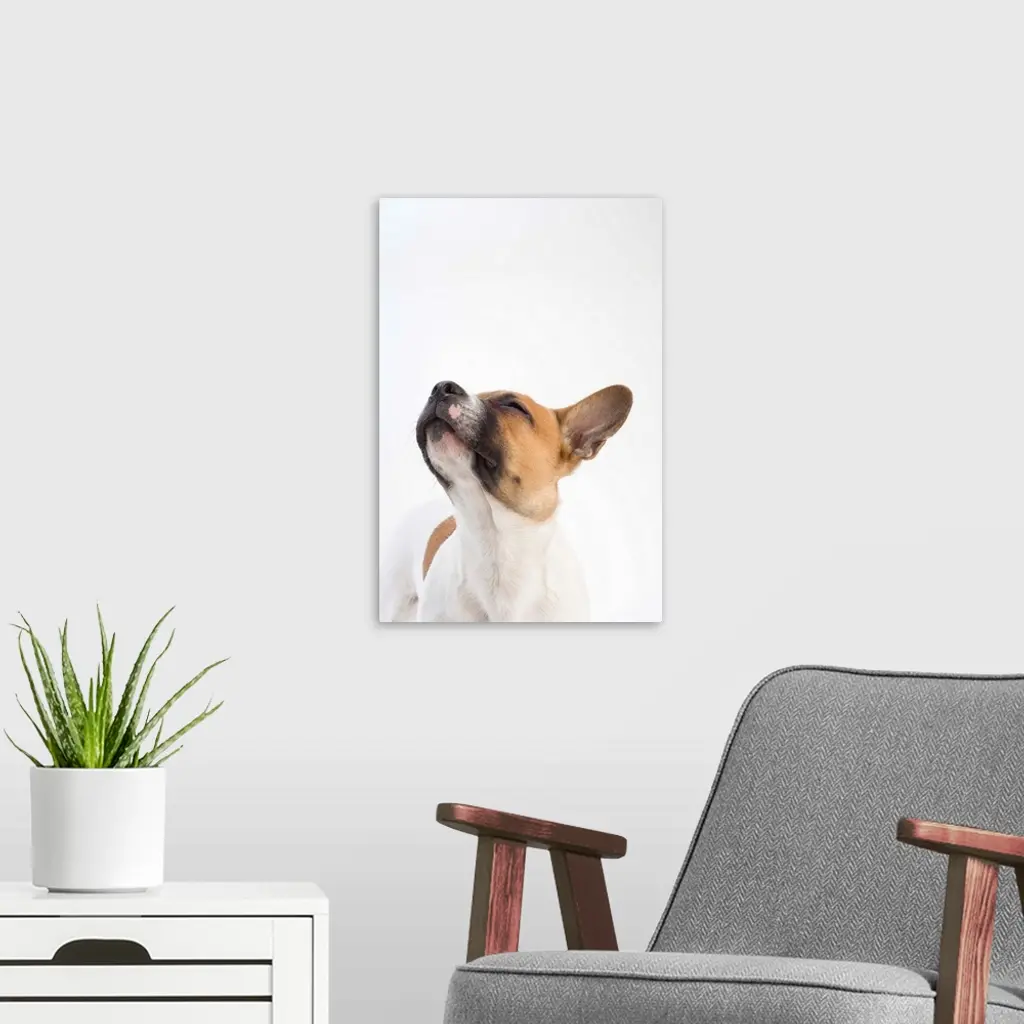 portrait of mongrel puppy wall art for home and office decor. Discover canvas art prints, photos, mural, big canvas art and framed wall art in GreatBigCanvas.com's varied collections.