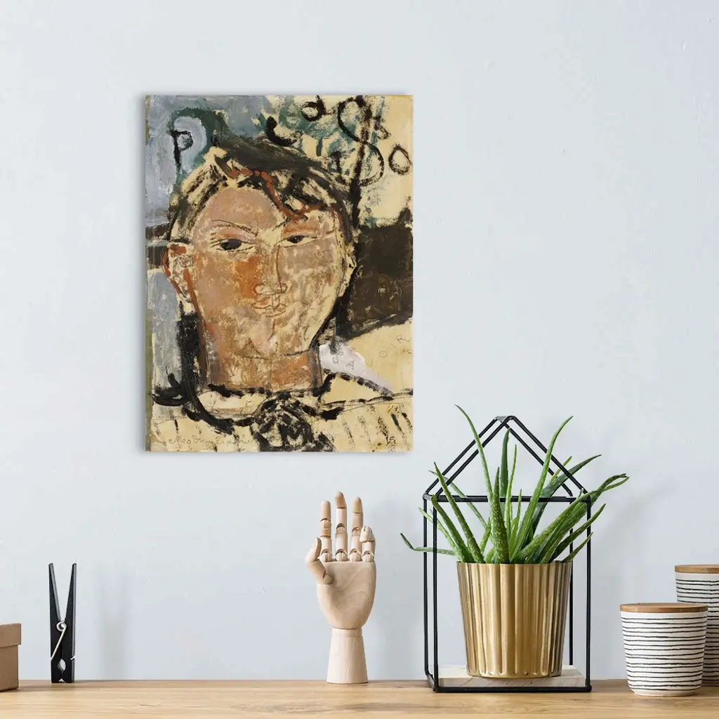 CH378362 Portrait of Picasso, 1915 (oil on paper laid on card) by Modigliani, Amedeo (1884-1920); 34.2x26.3 cm; Private Collection; (add.info.: Pablo Picasso (1881-1973), Spanish artist, Cubist;); Photo .... Christie's Images; Italian, out of copyright