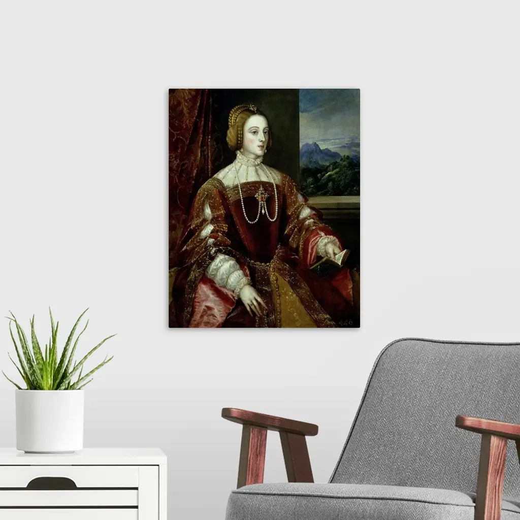 XIR61237 Portrait of the Empress Isabella of Portugal, 1548; by Titian (Tiziano Vecellio) (c.1488-1576); oil on canvas; Prado, Madrid, Spain; Giraudon; Italian, out of copyright