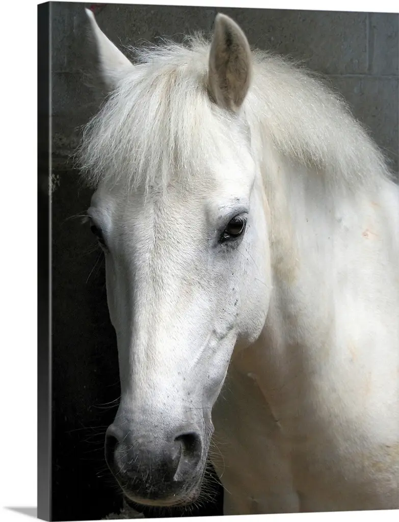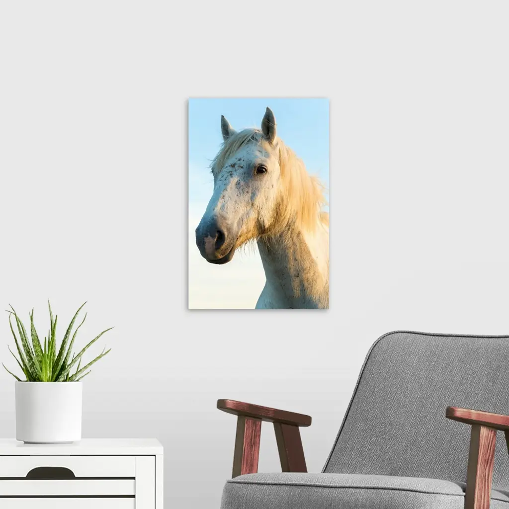 Portrait of white horses head, The Camargue, France.