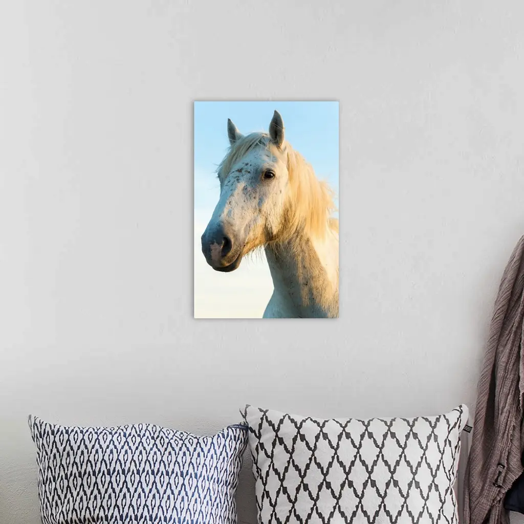 Portrait Of White Horses Head, The Camargue, France