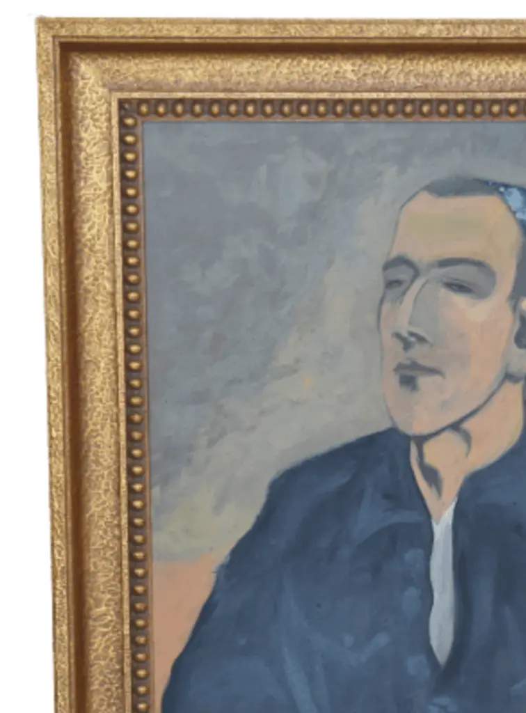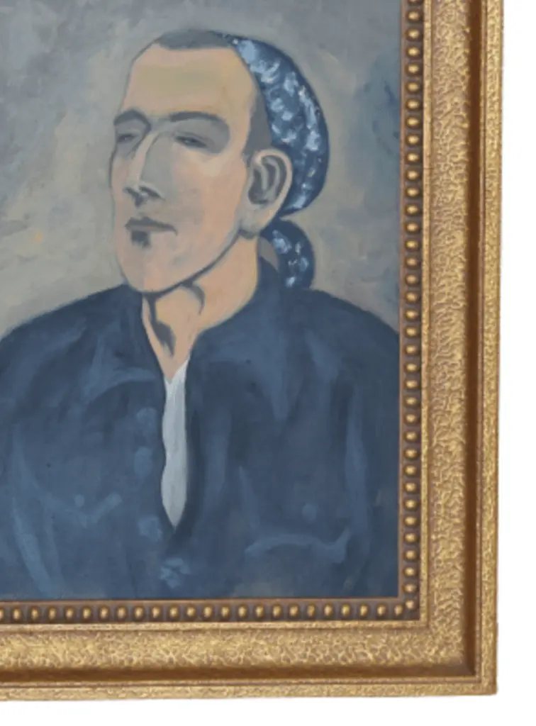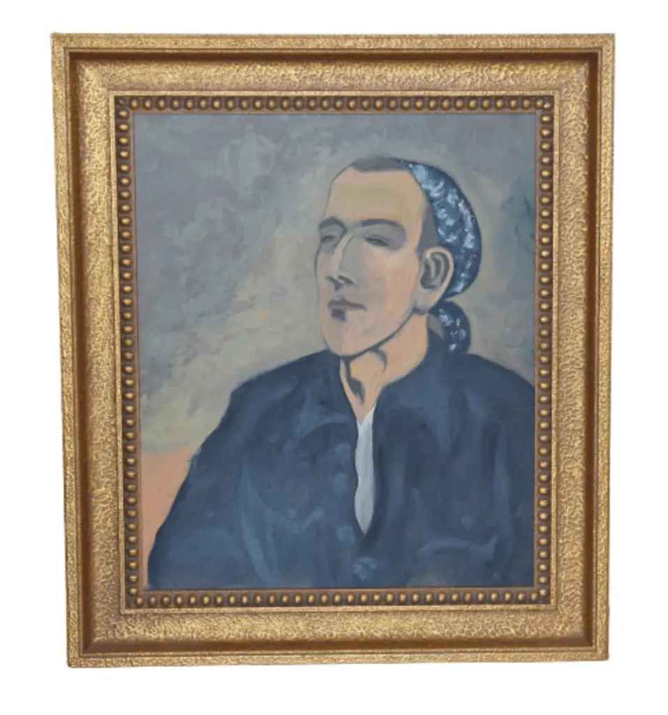 Vintage portrait oil painting on stretched canvas. Unsigned. The gold ornate wood frame and hanging hardware/wire are included. Dimensions: Artwork, 20"L x 24"H; overall, including the frame, 27"L x 31"H. Excellent condition.