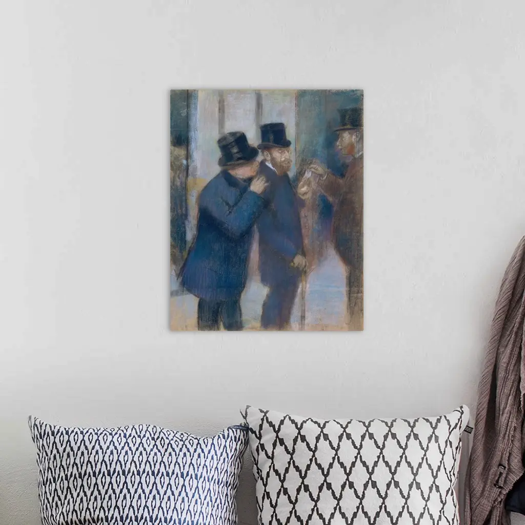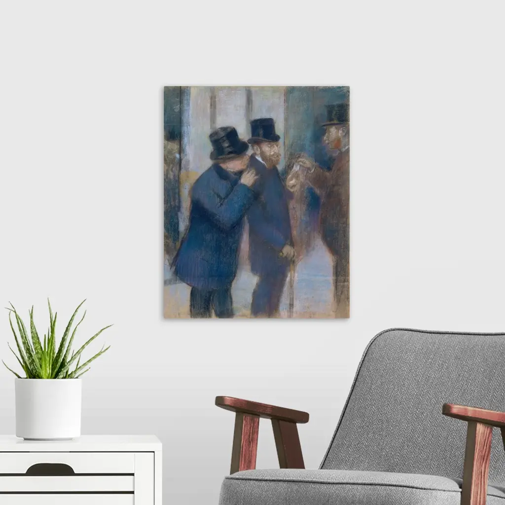This study for an oil painting by Degas of 1878-79 (Musee d'Orsay, Paris) depicts the financier and collector Ernest May (1845-1925) under the portico of the Paris stock exchange. At the time, May was in his early thirties and just beginning to expand his acquisitions from old master and eighteenth-century pictures to works by Degas, Manet, and their colleagues.